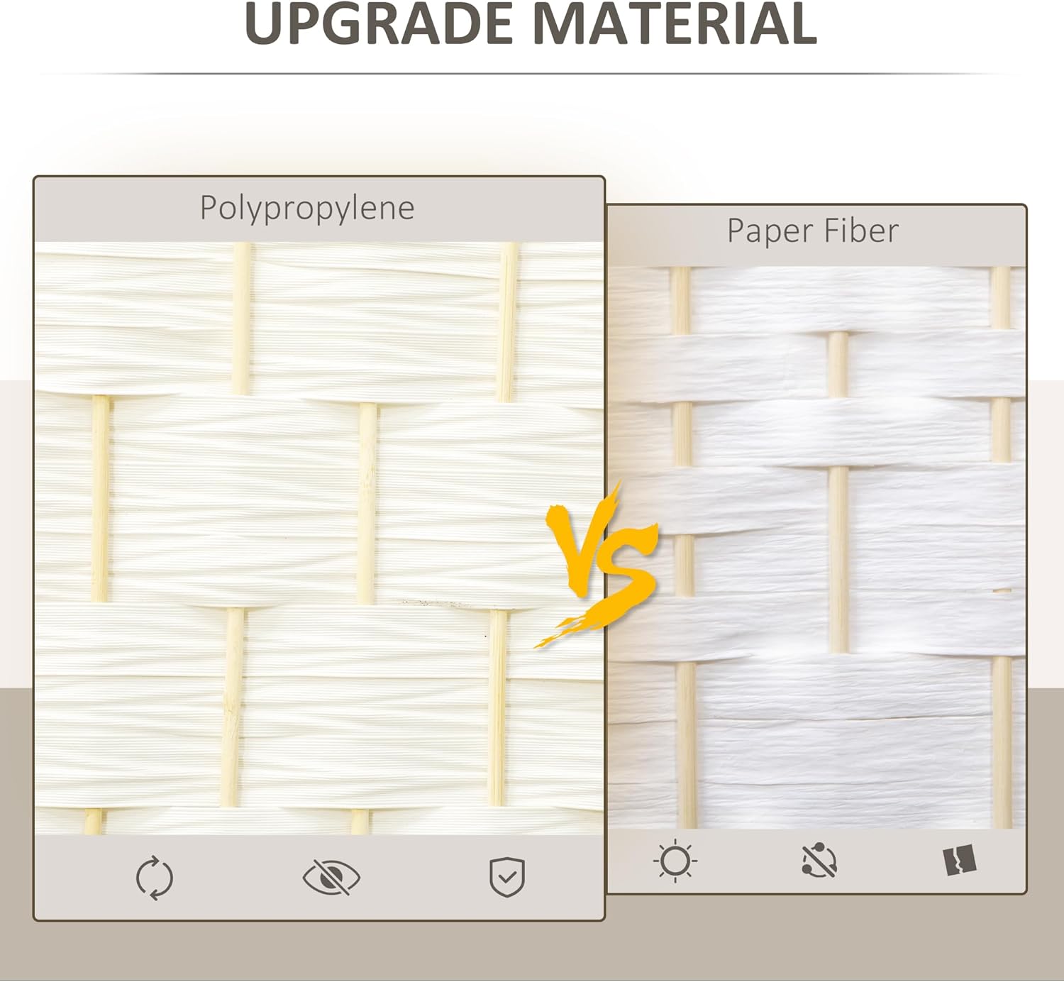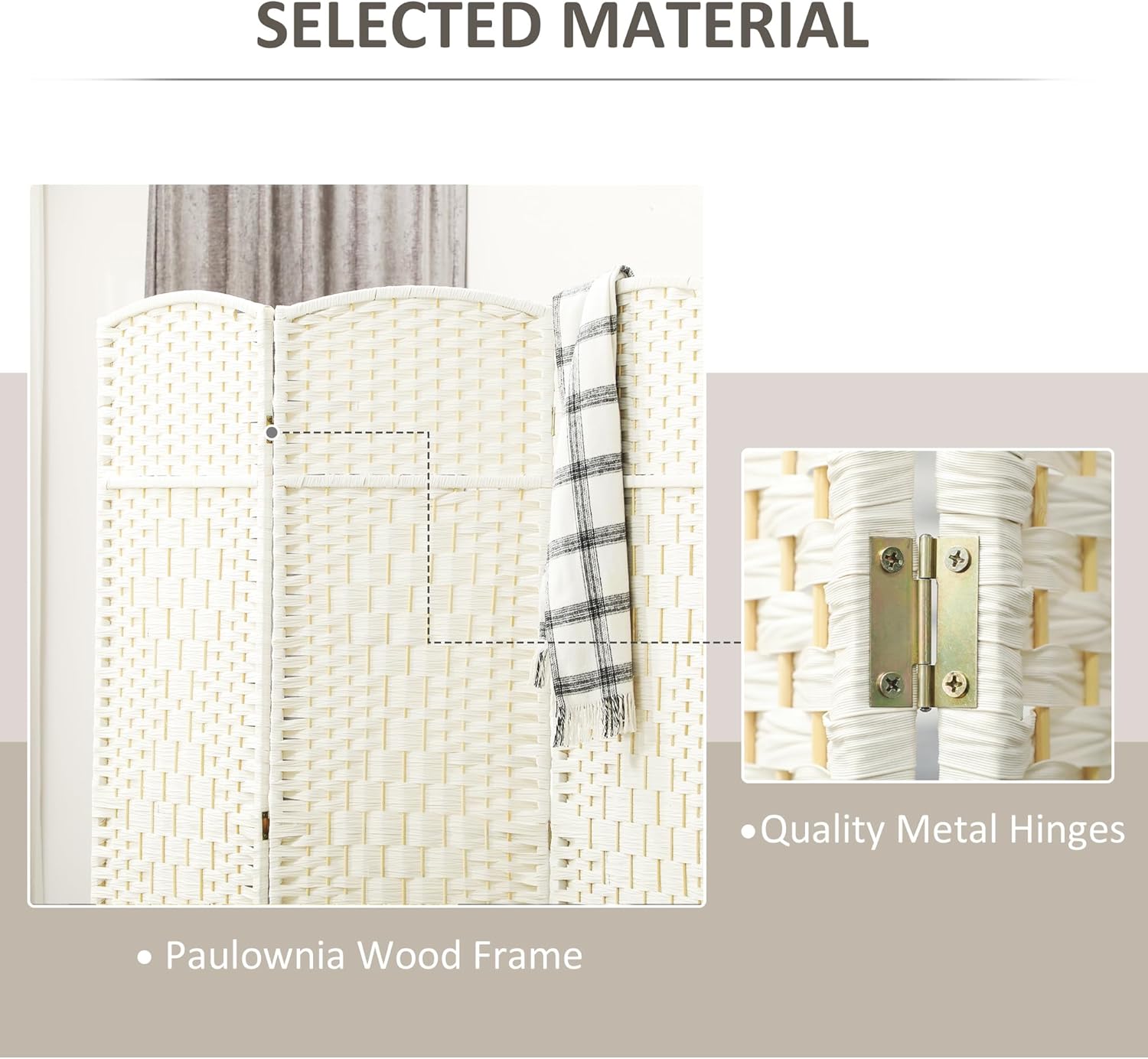 HOMCOM 3 Panel Room Divider, 6' Tall Folding Privacy Screen, Hand-Woven Freestanding Wall Partition for Home Office, Bedroom, White