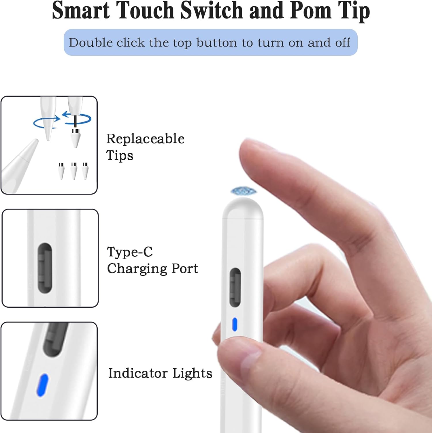 - 【What You Get】-Our tablet pens for touch screen set includes:1* stylist pens,3* Replaceable POM Tips,1* Type-C charging cable,1* User Manual.We support 1-year product warranty and 1-month free return and exchange policy for our pen with stylus tip. If you encounter any issues, please don't hesitate to contact us. Please note the apple pens does not support palm rejection, so avoid touching the screen with your hands.