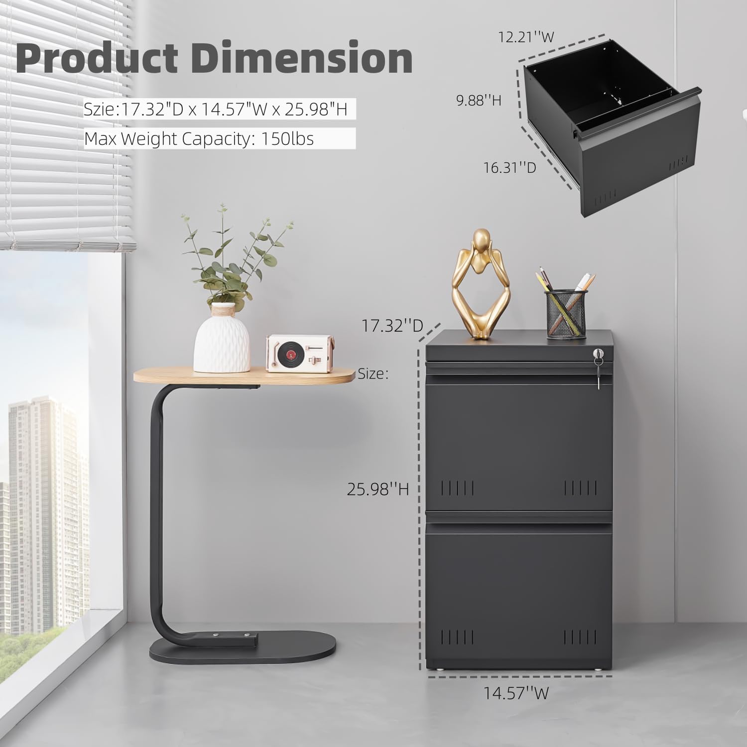 - Versatile and Space-Saving Design: This small file cabinet is perfect for any home office or professional environment where space is limited. The filing cabinet for home office design is compact but offers generous storage for all your files and documents. This 2 drawer file cabinet provides ample space for files, office supplies, and personal items, making it a versatile and efficient organizational solution for any workspace.