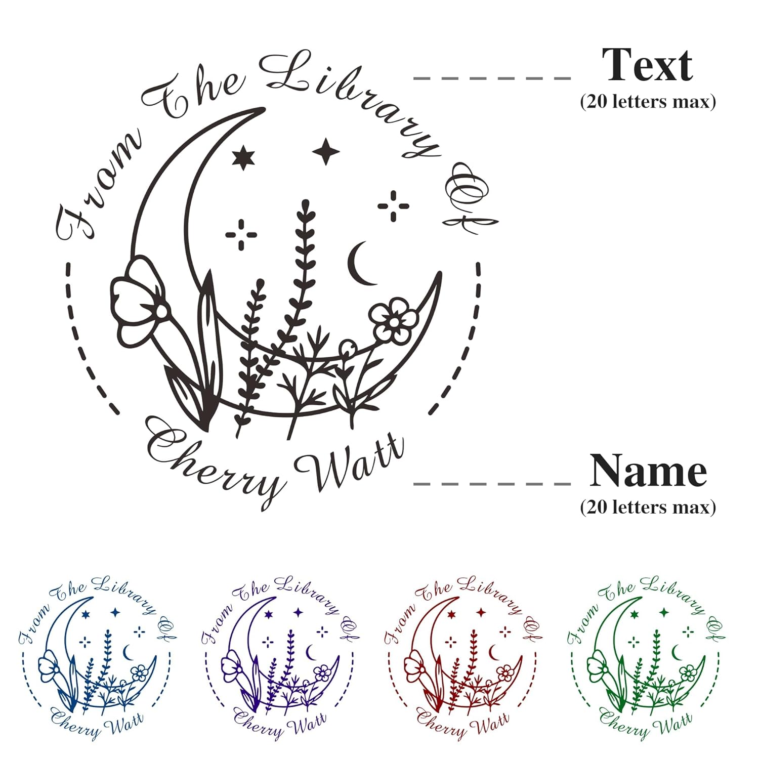 Customized Book Embosser Color Moon Plants Stamp with Your Name or Design Flower Personalized Library Embosser Stamp Custom Books Business Cards Paper Documents Notebooks etc. (Moon-01)