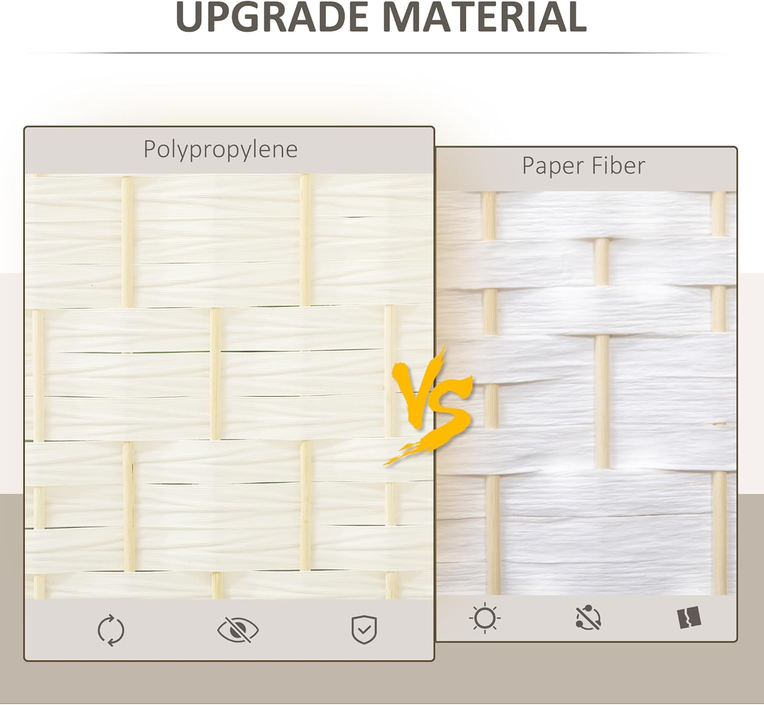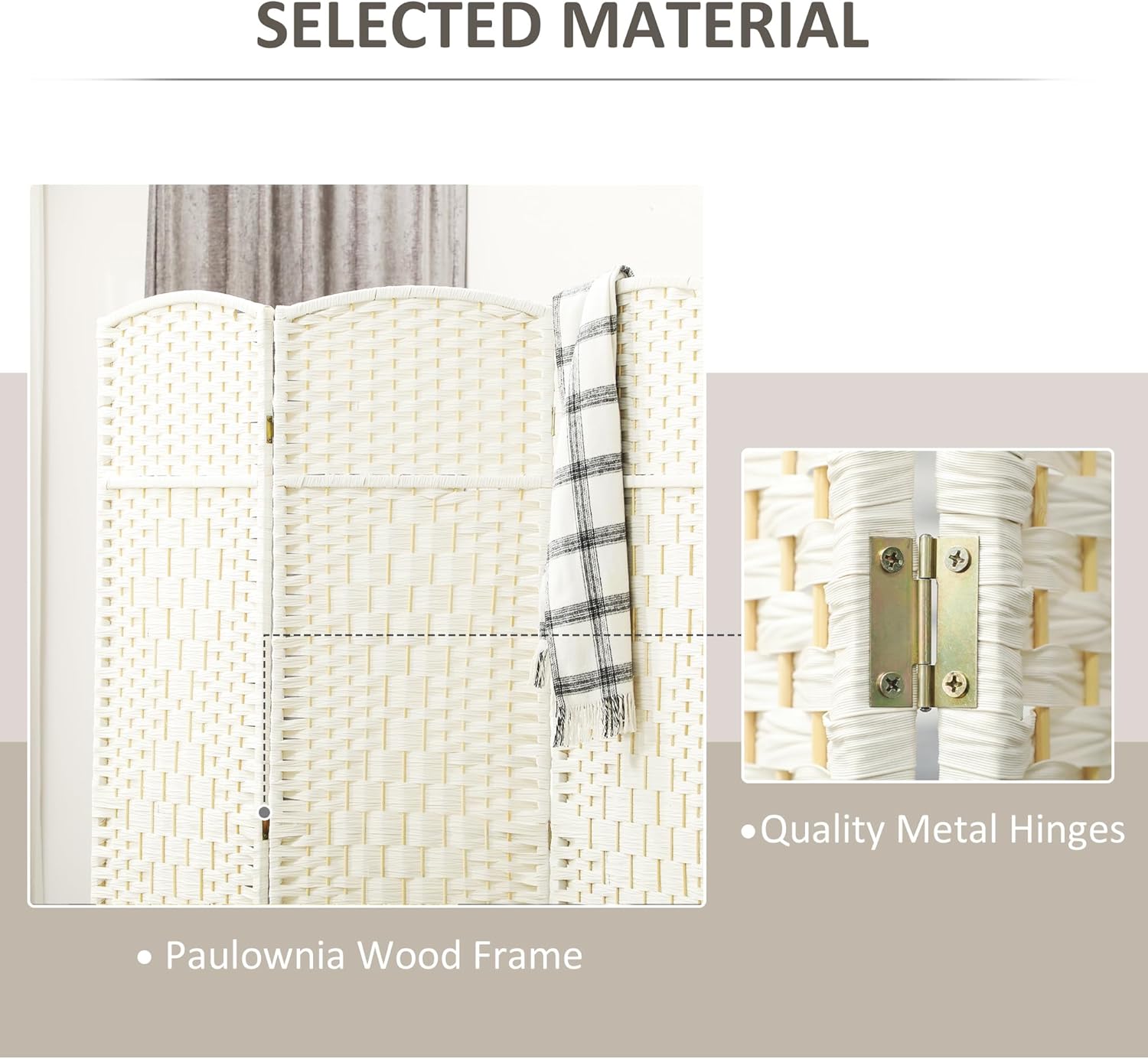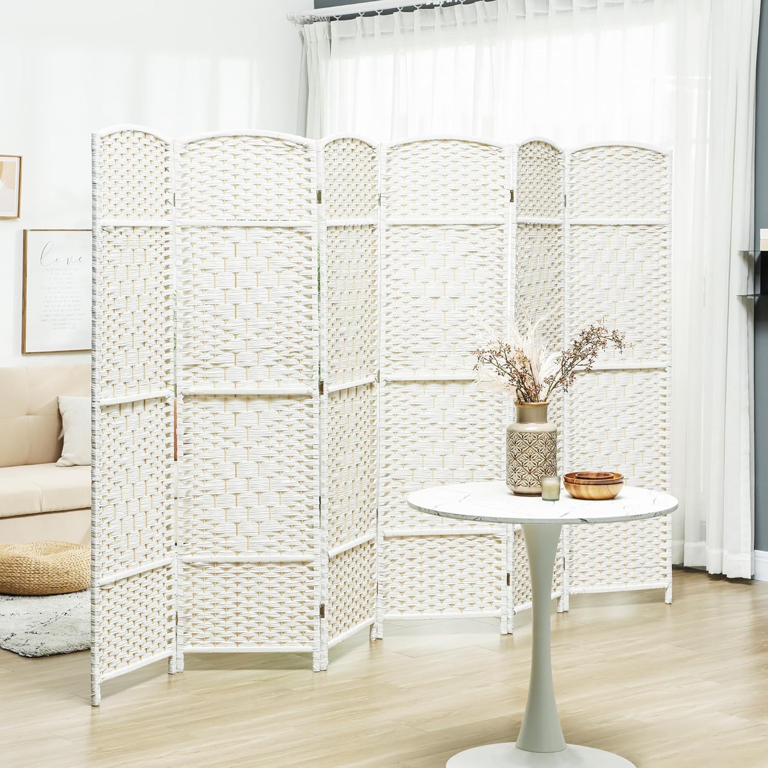 HOMCOM 6 Panel Room Divider, 6' Tall Folding Privacy Screen, Hand-Woven Freestanding Wall Partition for Home Office, Bedroom, White