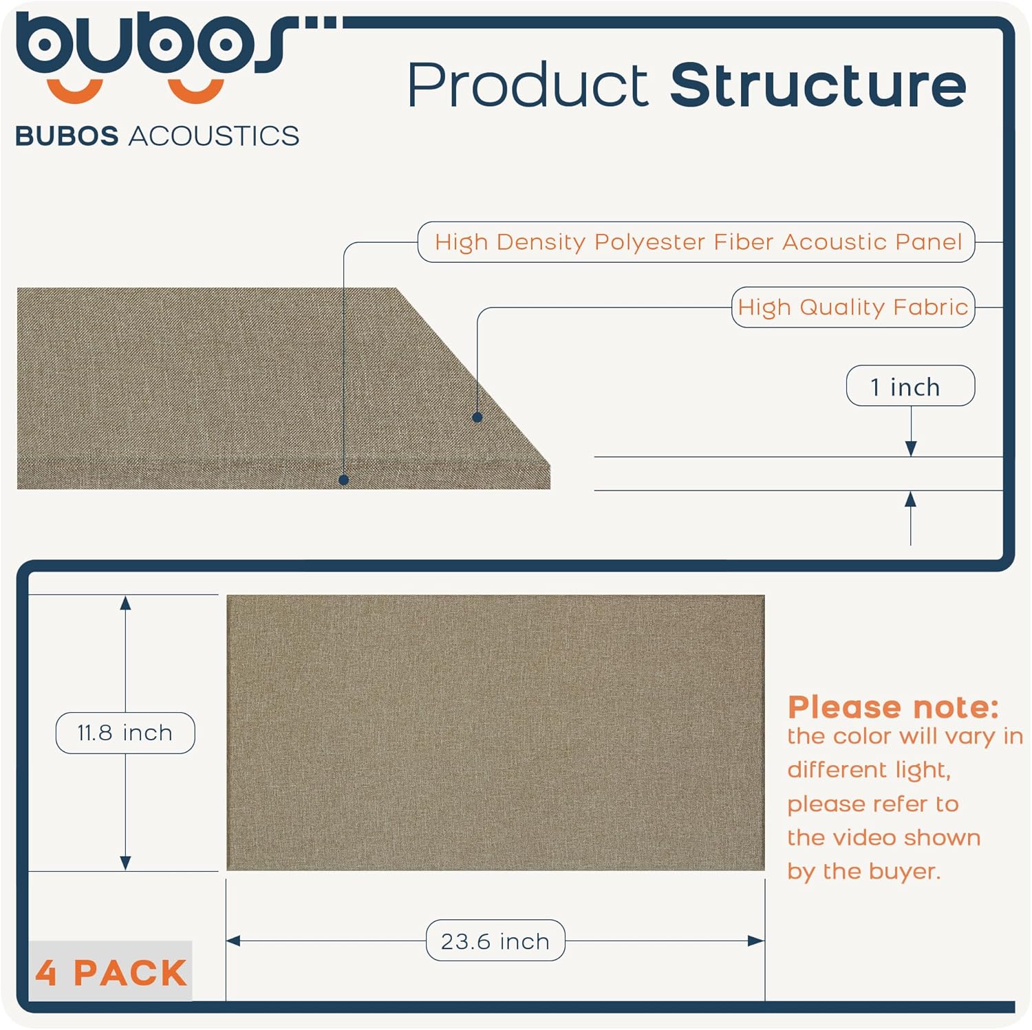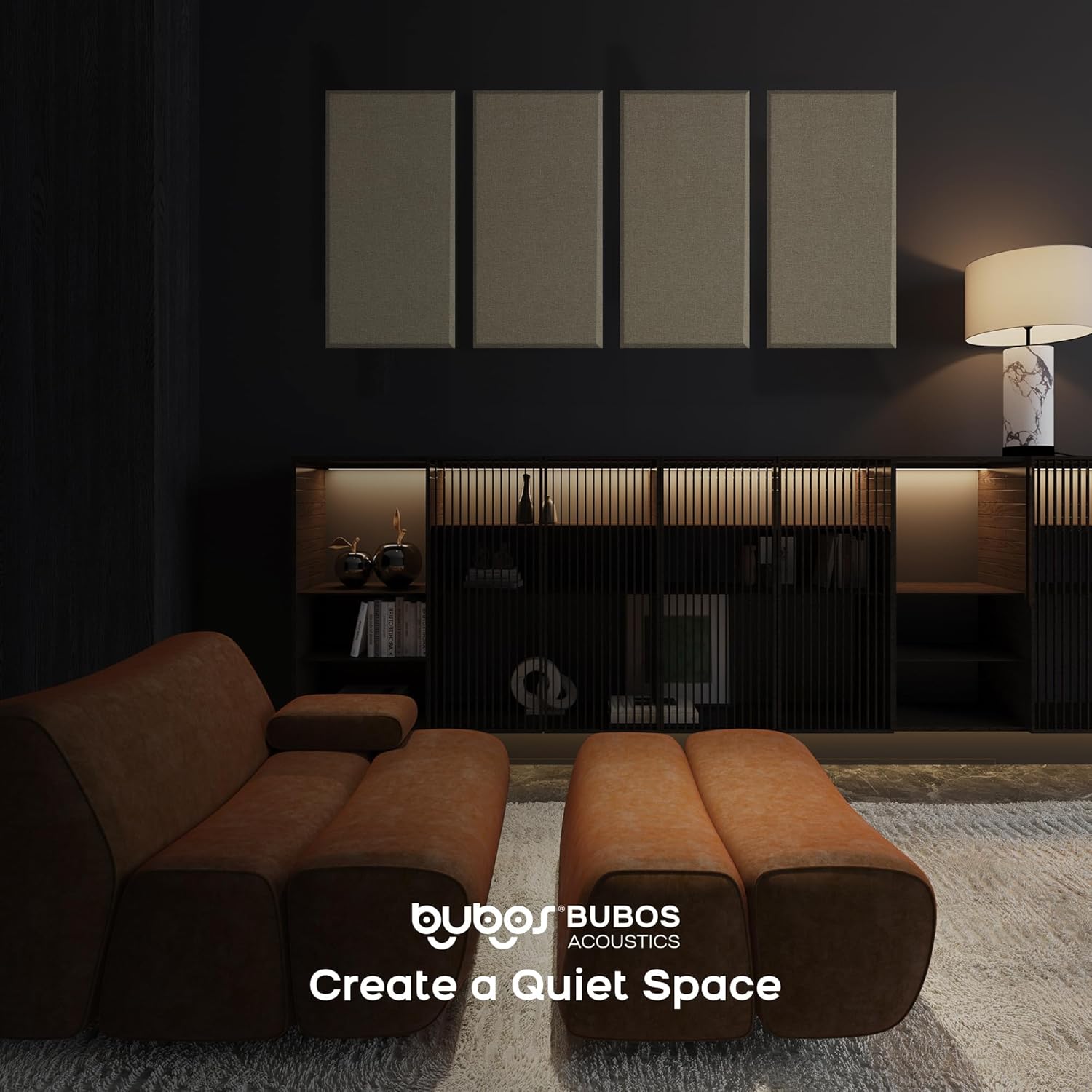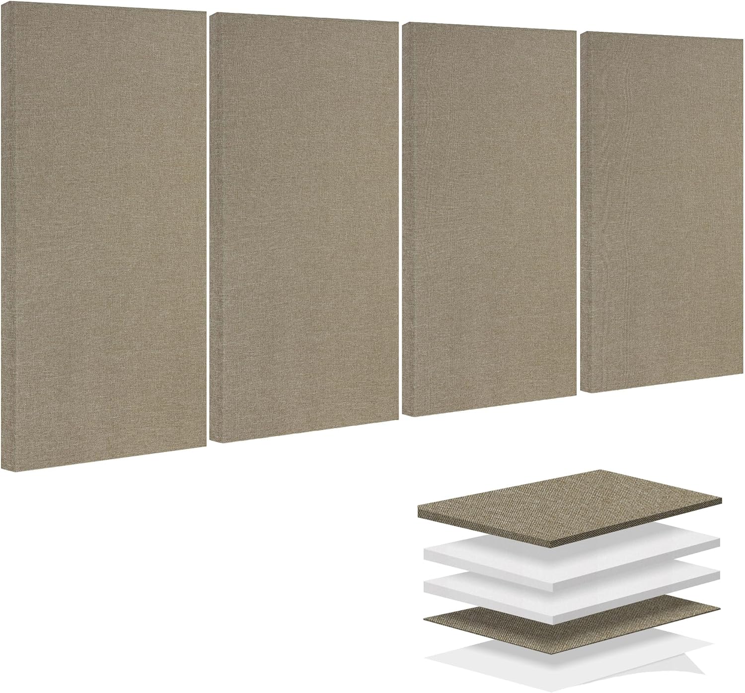 BUBOS 4 PCS Acoustic Panels,23.6''x11.8'' Fabric Soundproof Wall Panels,Self-adhesive Sound Absorbing Panels for Studios, Office, Home Theater,Fabric-Clad Jute