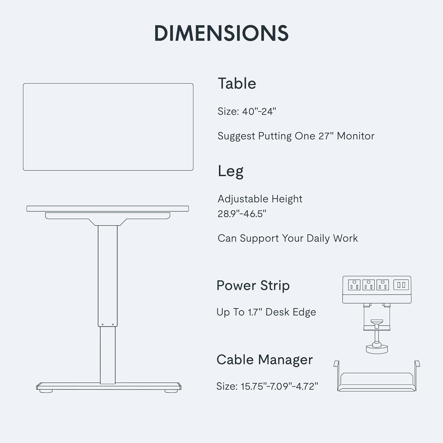 - 4 MEMORY BUTTONS: Easily switch between sitting and standing positions with our 6-button digital controller that features 4 programmable memory presets. The motorized height-adjustable system adjusts smoothly from 28.1” to 45.7”, and the motor runs quietly at less than 50 dB.