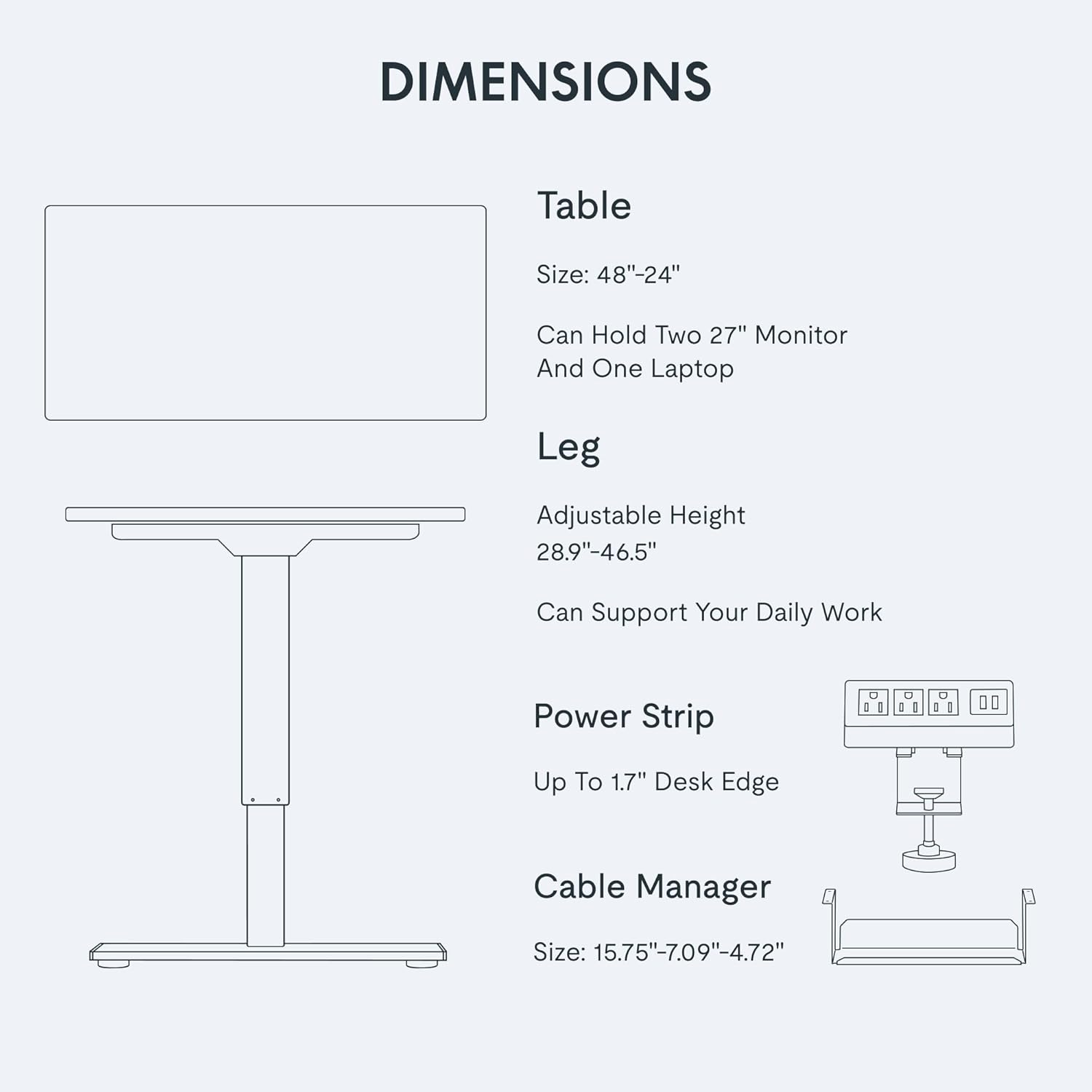 - 4 MEMORY BUTTONS: Easily switch between sitting and standing positions with our 6-button digital controller that features 4 programmable memory presets. The motorized height-adjustable system adjusts smoothly from 28.1” to 45.7”, and the motor runs quietly at less than 50 dB.