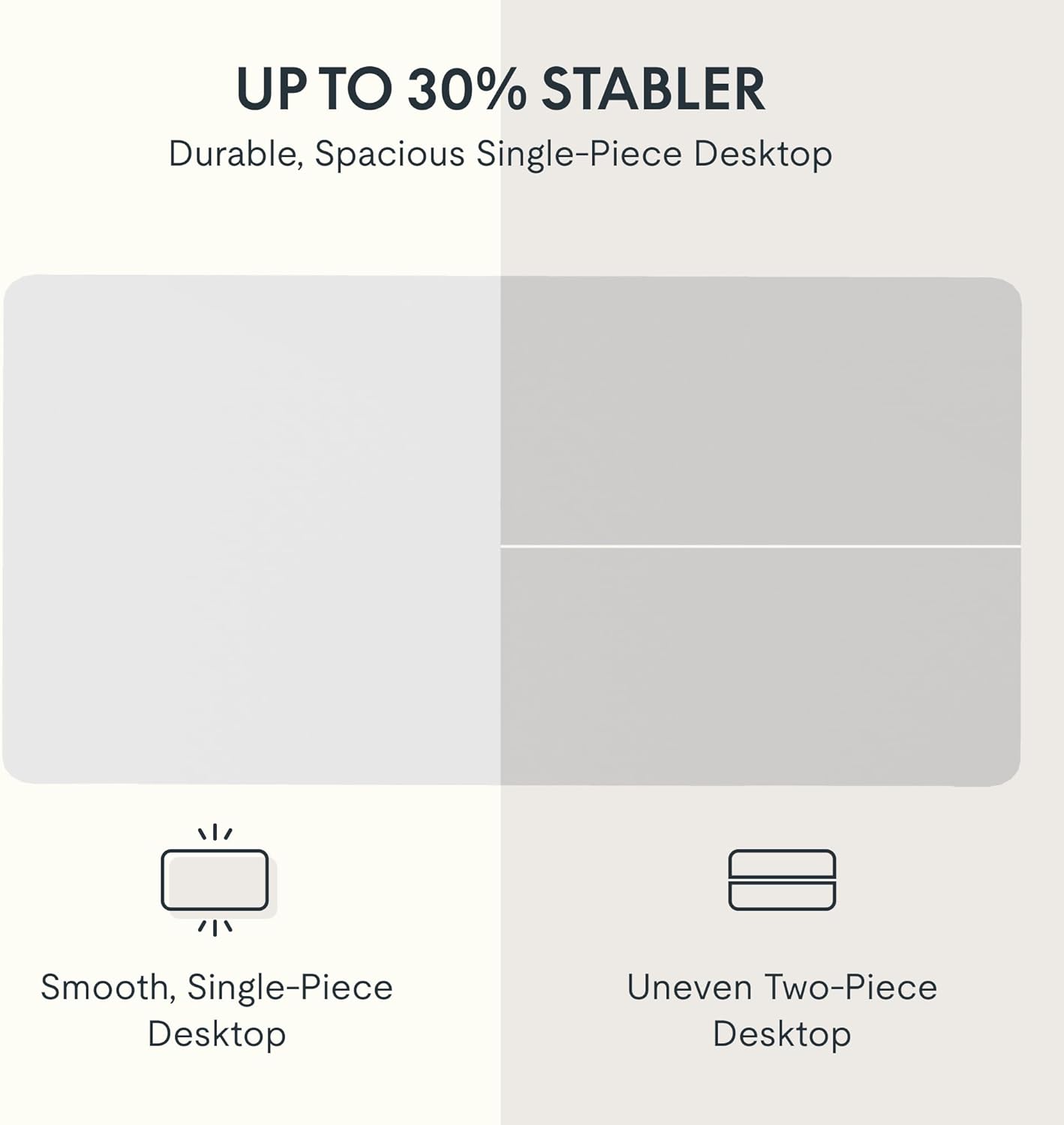 - AMPLE WHOLE-PIECE DESKTOP – FSC-Certified wood: Table top made of FSC-Certified wood, this standing desk features a spacious one-piece eco-friendly desktop that provides ample room for your computer setup, documents, and accessories, creating a well-organized and productive work environment. Hand-measured: ±1" tolerance.