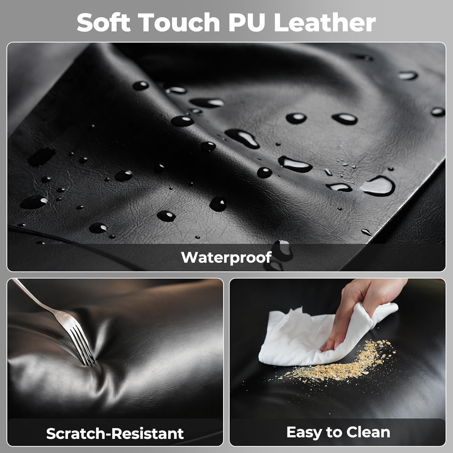 - Soft Touch Leather Fabric: Exquisite and luxurious soft faux leather fabric offers constant softness and comfort, with its unique texture and luster standing out. Featuring breathable, durability, smoothly, scratch-resistant, pet-friendly, non-pilling and easy to clean