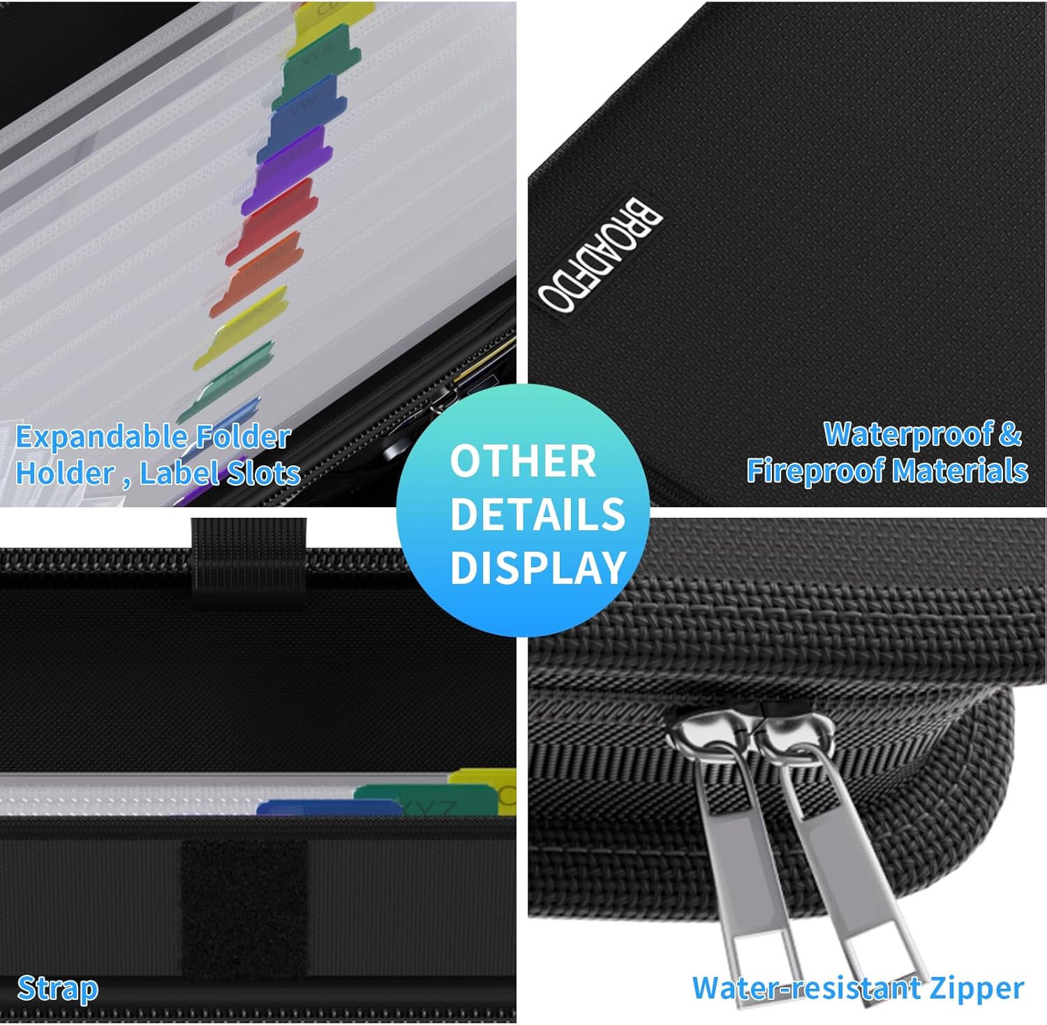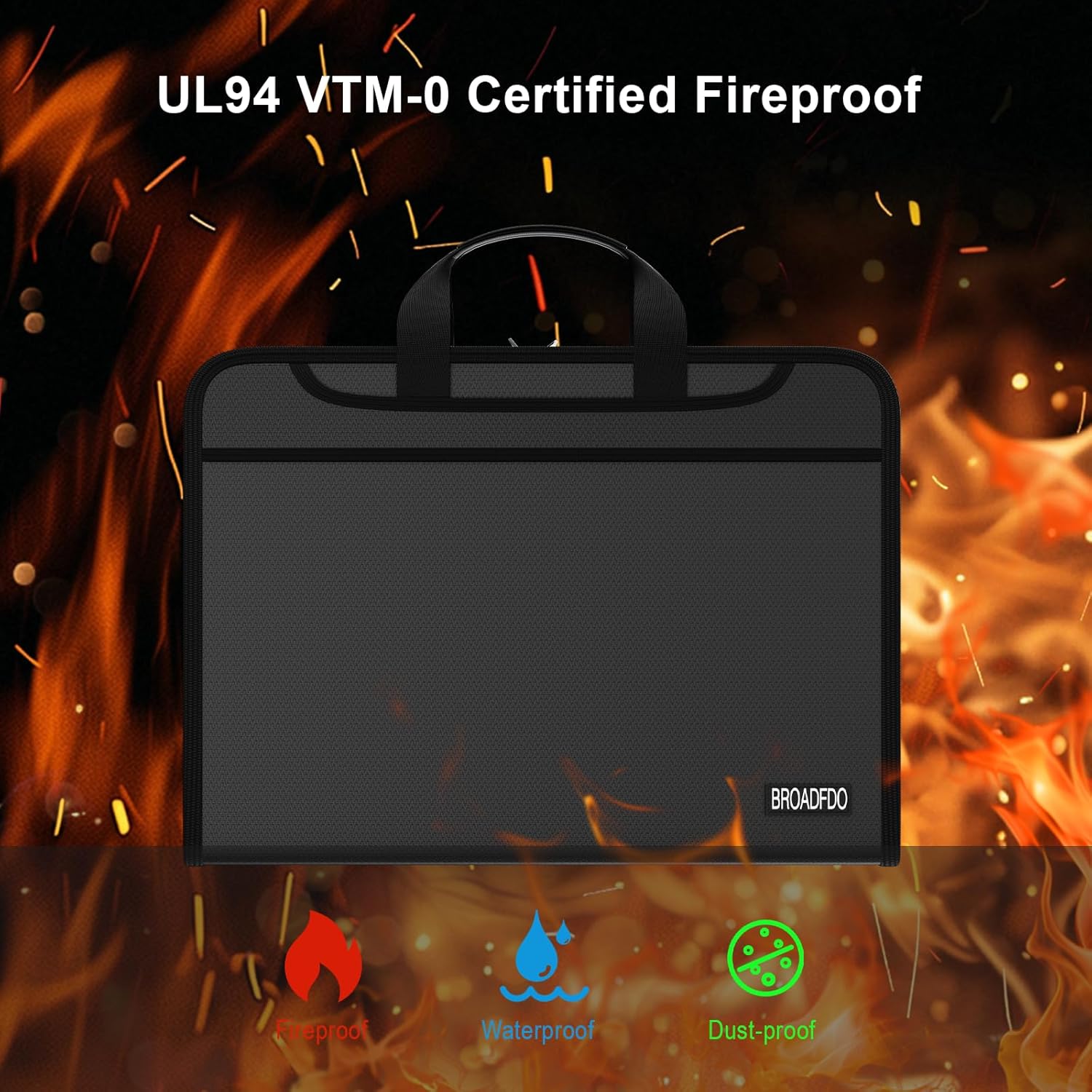 - Durable, Portable, & Built to Last Crafted with premium silicone fiberglass for fire and heat resistance, Broadfdo features a reinforced handle, double zipper closure, and dust-proof exterior. Its lightweight, compact design is perfect for school, business, travel, or daily file storage.