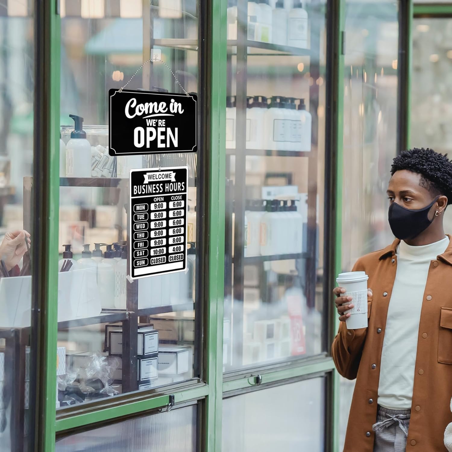 - Great Business Helper - Comes with open closed flip signs and business hour sign with a set of vinyl digital stickers, eye-catching design tells customer " come in we are OPEN " or " sorry we are CLOSED " and provides hours of operation of your business