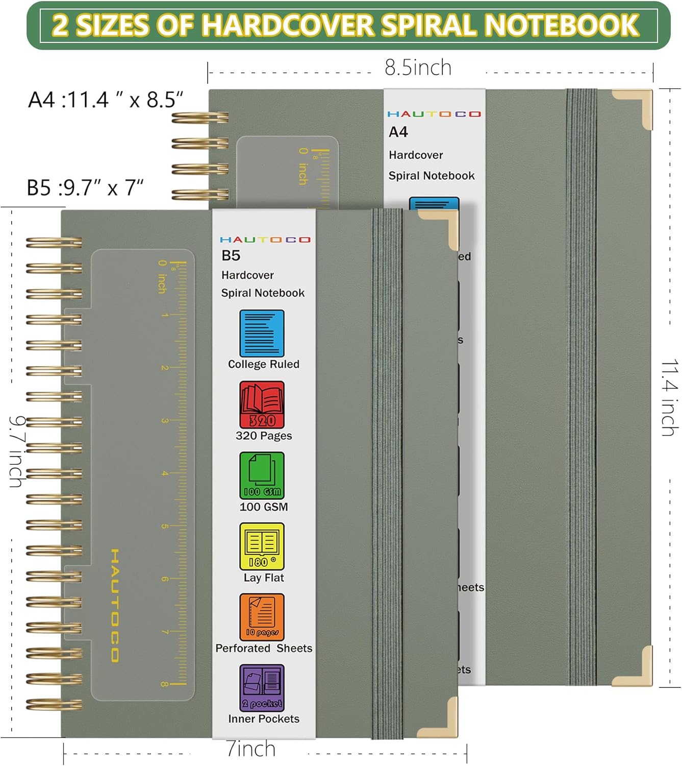 HAUTOCO Spiral Notebook Journal 8.5X 11", College Ruled Leather Notebook with 320 Pages, 100 GSM Paper, A4 Hardcover Notebook, Lined Journaling Notebooks for Work Office School Business, Olive Green