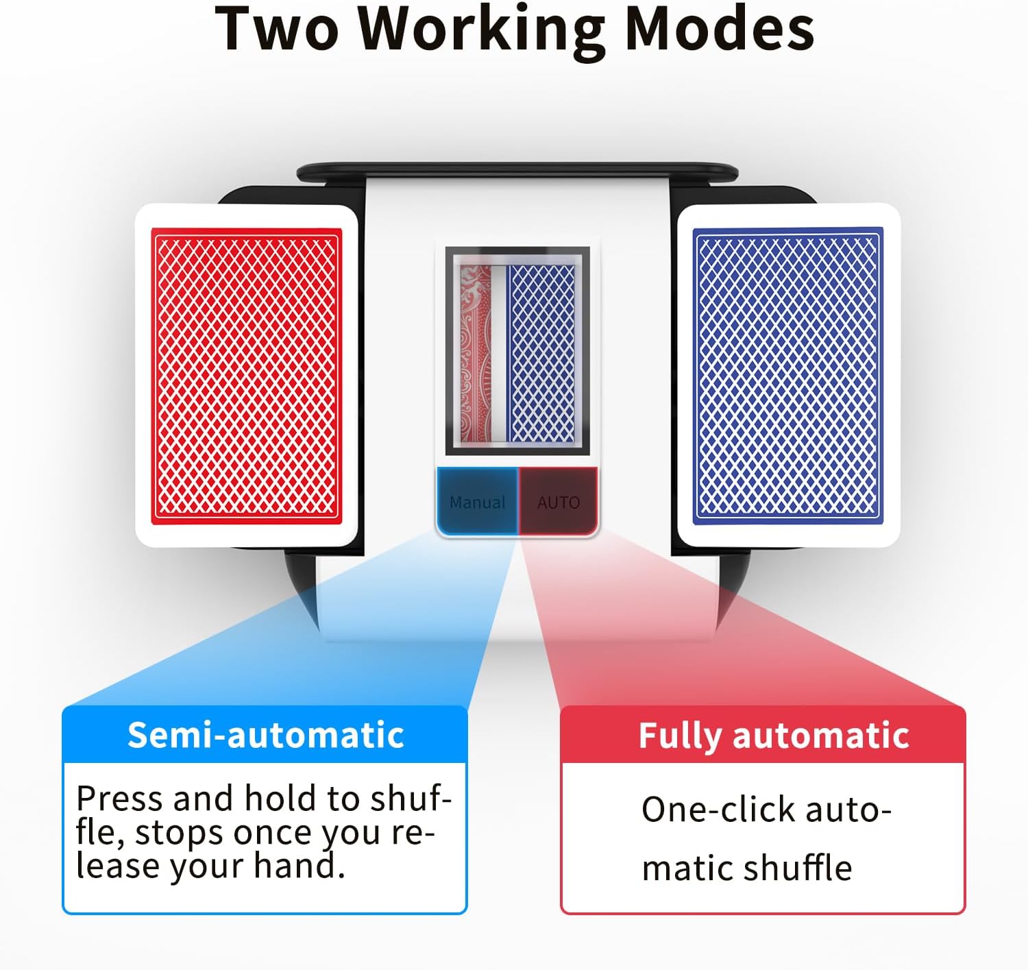 - Two Working Modes: Fully Automatic: One-click button for effortless, automatic shuffling. Semi-Automatic: Press and hold to shuffle, stops when you release for more control.