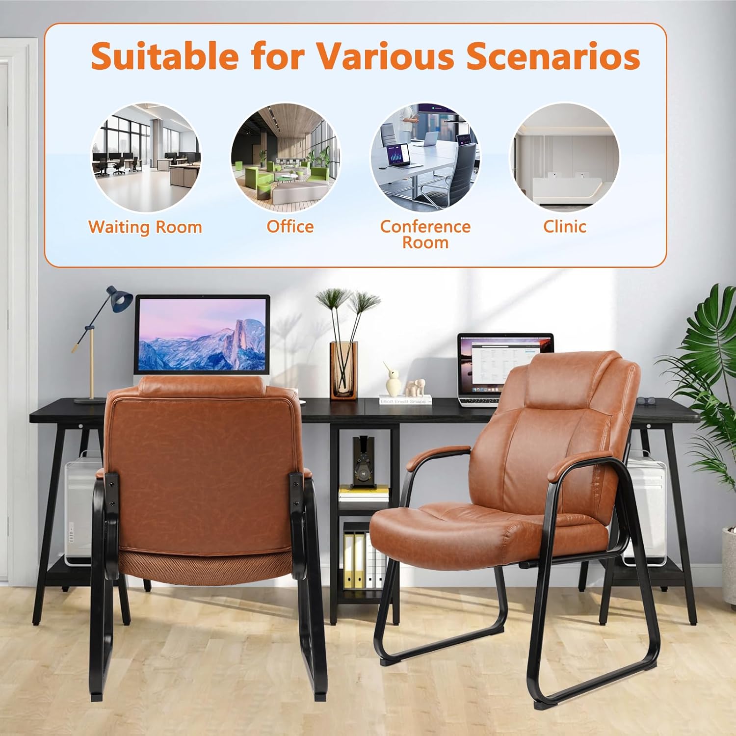 CLATINA Big & Tall 500 lb. Guest Chair, PU Leather Office Reception Chairs with Sled Base, Desk Chair No Wheels for Waiting Room Conference Lobby Computer Living Room, Brown