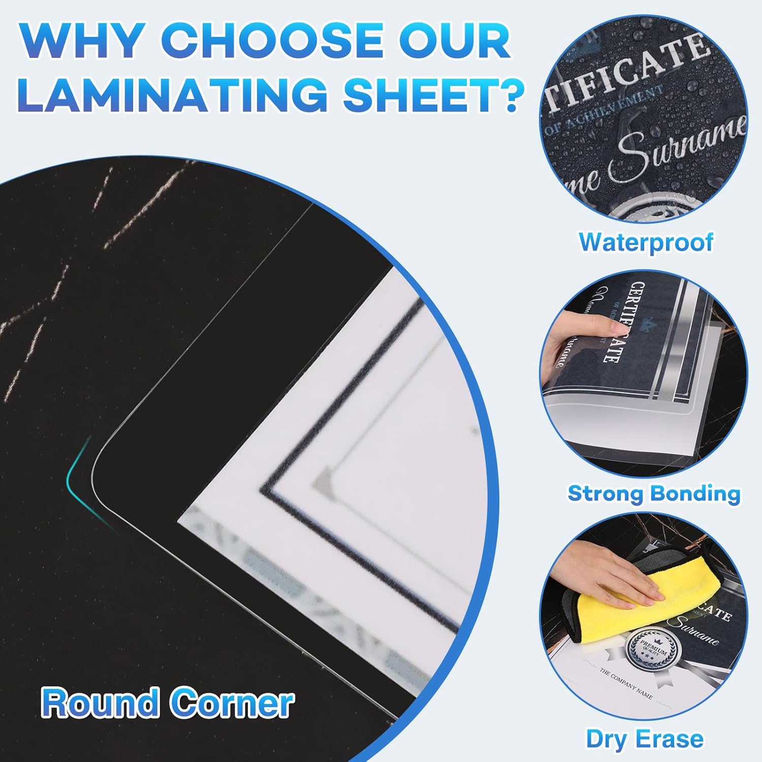 - Wide Application: This thermal laminating pouches is suitable for various scenarios and can be used to save files, photos, menus, recipe cards, certificates, etc. It can be used in classrooms, homes, and offices.