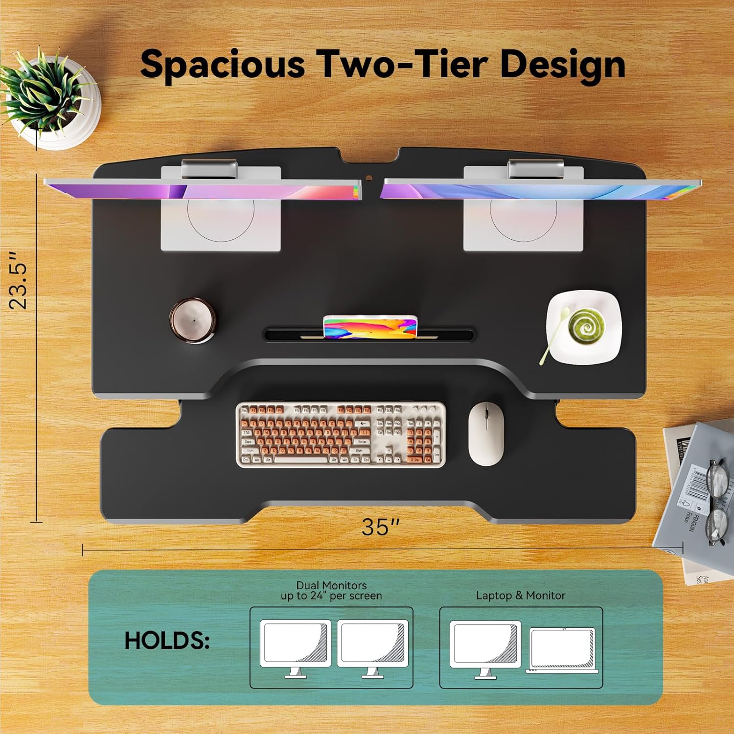 35" Standing Desk Converter, Height Adjustable Desktop Riser with Keyboard Tray for Two Monitors, Sit to Stand up Computer Workstation for Home Office, Black