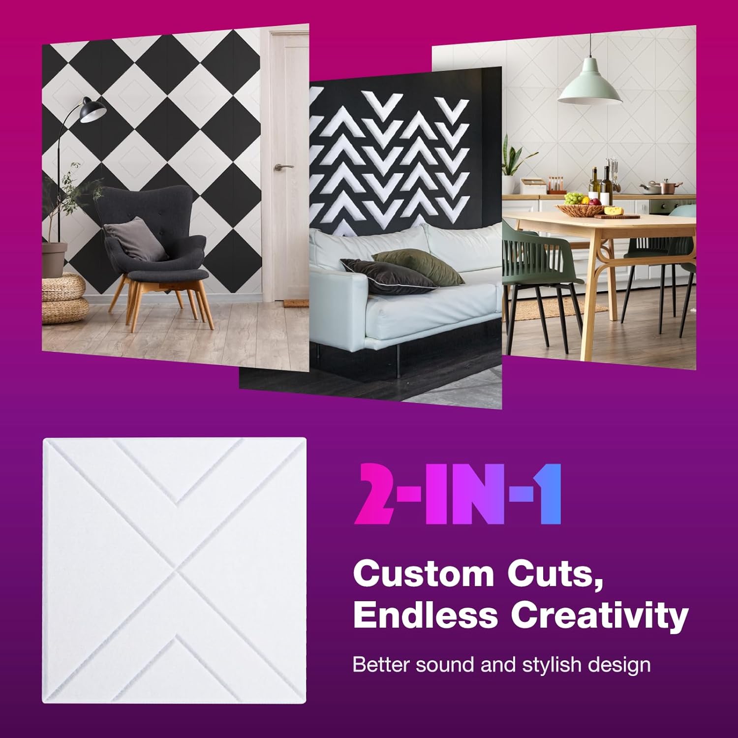 - Perfect DIY:The soundproof wall panel with a modern design concept provides unique decorative charm for your space. You can assemble it into any DIY shape according to your decoration needs. It has strong plasticity. Different rotation directions can create different patterns, making the space layout more flexible and beautiful. These self-adhesive soundproof panels provide an attractive way to reduce noise and absorb echoes in the room to improve sound quality.