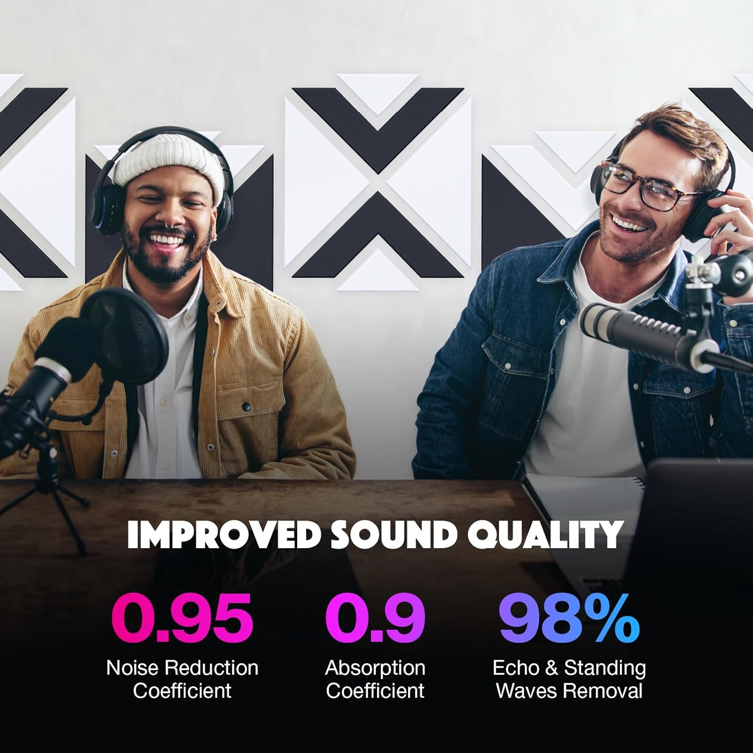18 Pack Self-Adhesive Acoustic Panels, 12"x 12"x 0.4" Sound Absorbing Panels, High Density Square Sound Proof Noise Dampening Panels for Walls Home Studio Office, Triangle Cutting Style, White