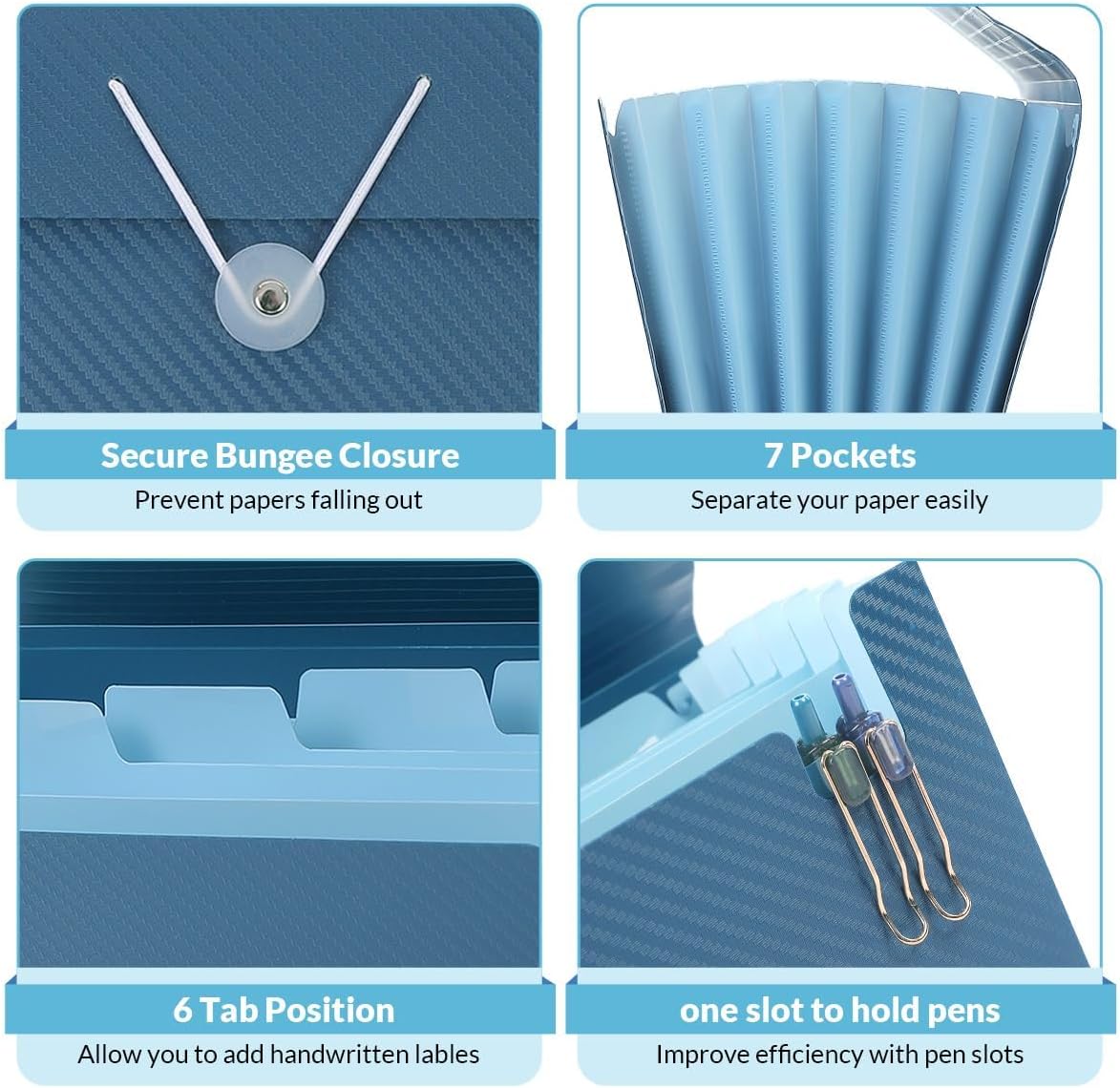 SKYDUE Accordion File Organizer, Expanding File Folder with 7 Pockets, Portable Receipt Paper Documents Organizer, Letter Size Filing Folder School Office Supplies, Dark Blue