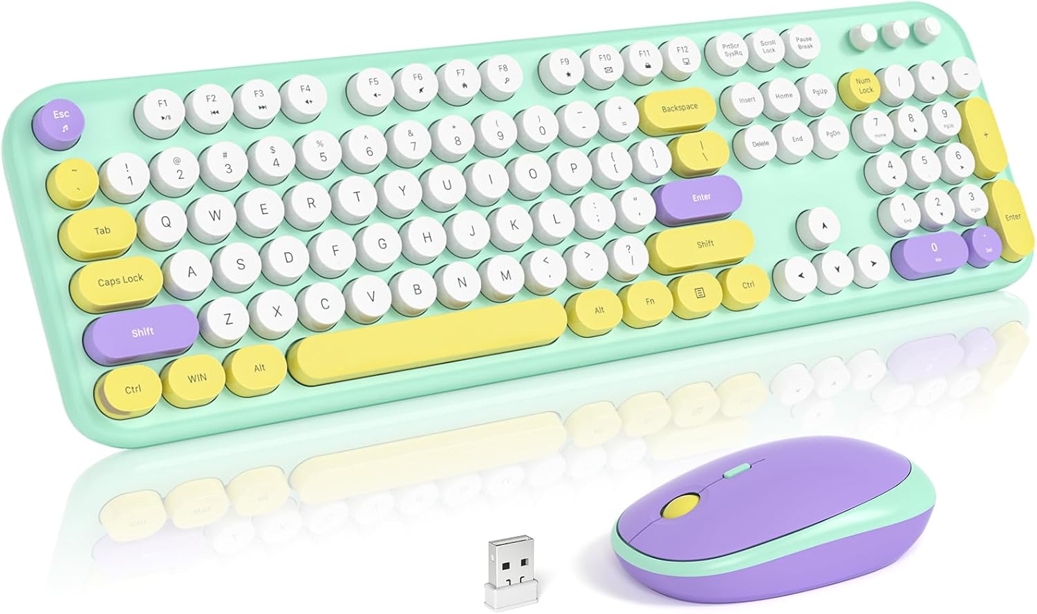 - Wireless Keyboard and Mouse Combo: 104-key colorful keyboard with floating round keys, with foldable stand and anti-slip pad ensures comfortable typing. Optical mice with 3 sensitivity levels provides precise control.