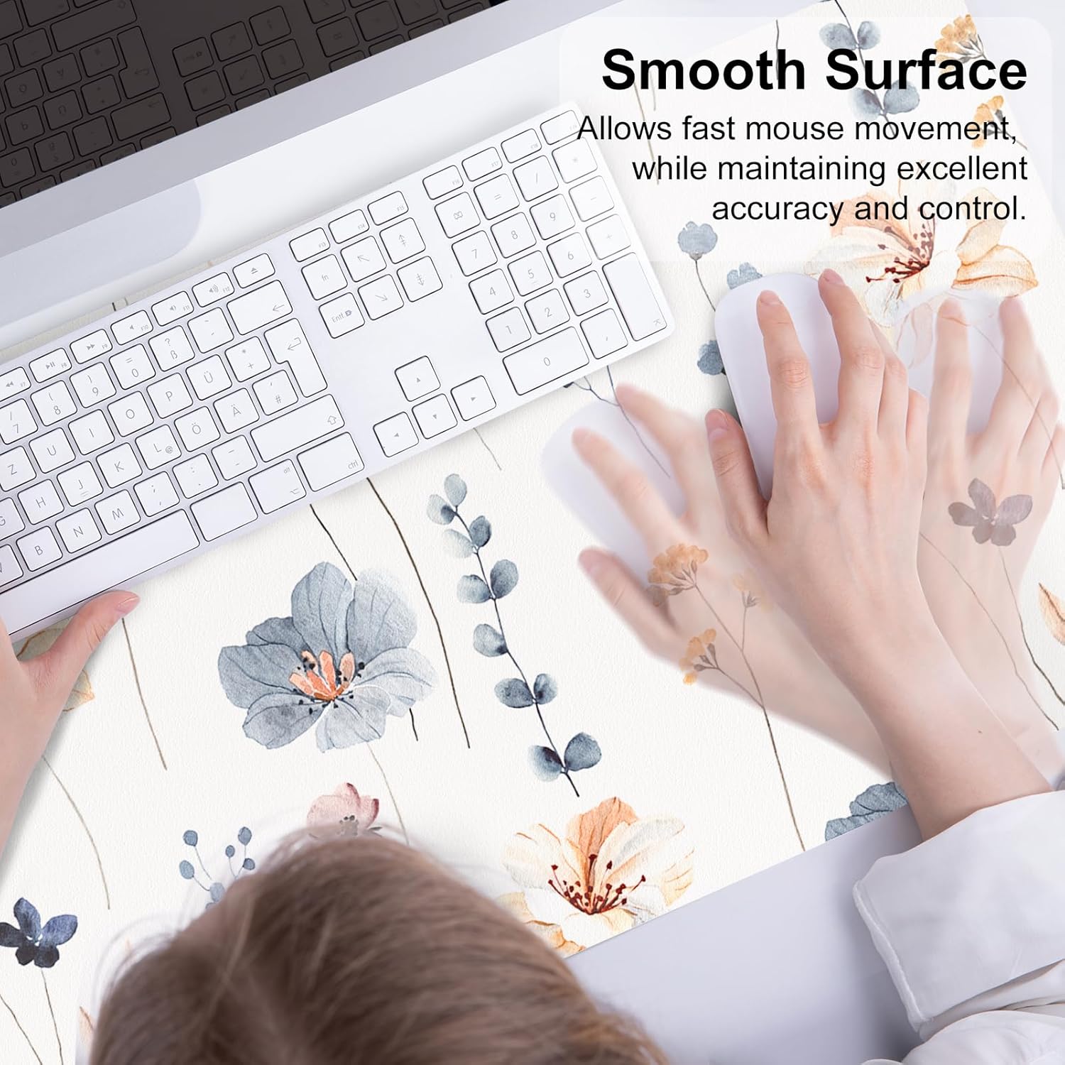 QIYI Large Mouse Pad, Floral Desk Mat for Desktop, Women Girls PU Leather Waterproof Gaming Mousepad, Computer Laptop Flower Desk Accessories Protector Writing Pad for School Office Home 31.5" x 15.7"