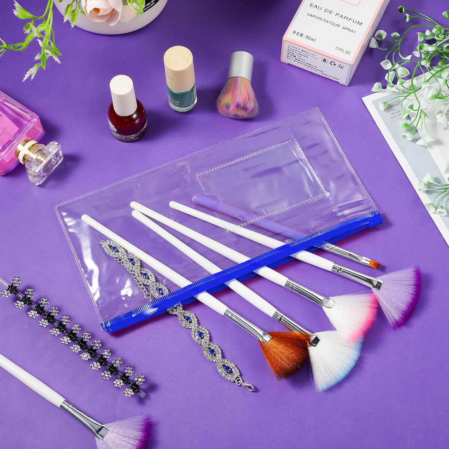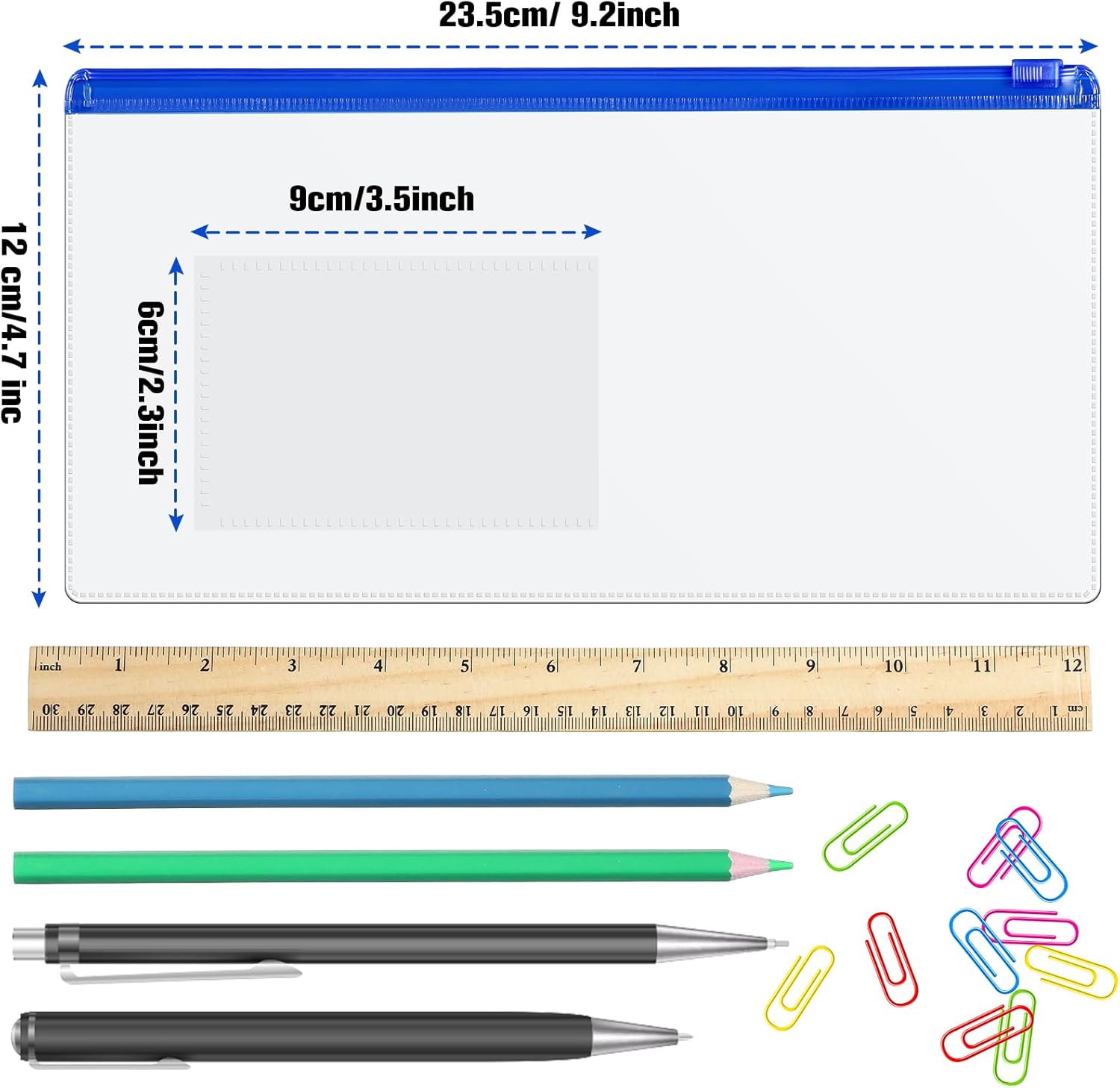 Marspark 100 Pieces Clear Pencil Case Zipper Envelope Bulk with Label Pocket Clear Plastic Envelopes with Zippered, A6 Pencil Bags for Cash, School Office Supplies, 9.2 x 4.7 Inches(Blue)