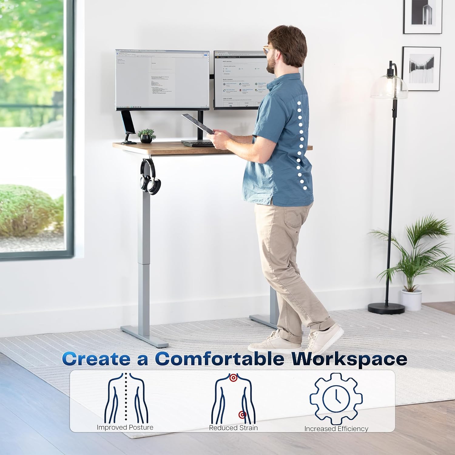 VIVO Electric 43 x 24 in Standing Desk, Memory Height Adjustment, 1B Series, One-Piece Reclaimed Wood Top, Gray Frame, DESK-KIT-1G4P
