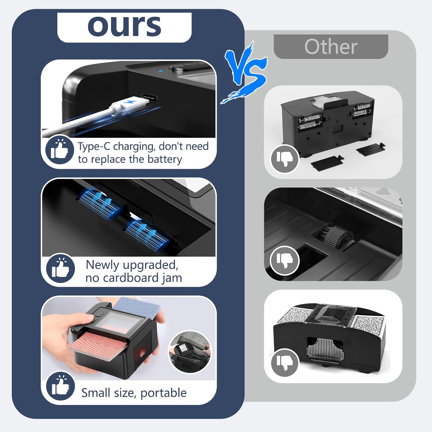 - Long-Lasting Rechargeable Battery – Equipped with a 2000mAh battery shuffler, this USB-C charging card shuffler ensures quick power-ups and extended playtime. No more hassle with disposable batteries—enjoy uninterrupted gaming anywhere