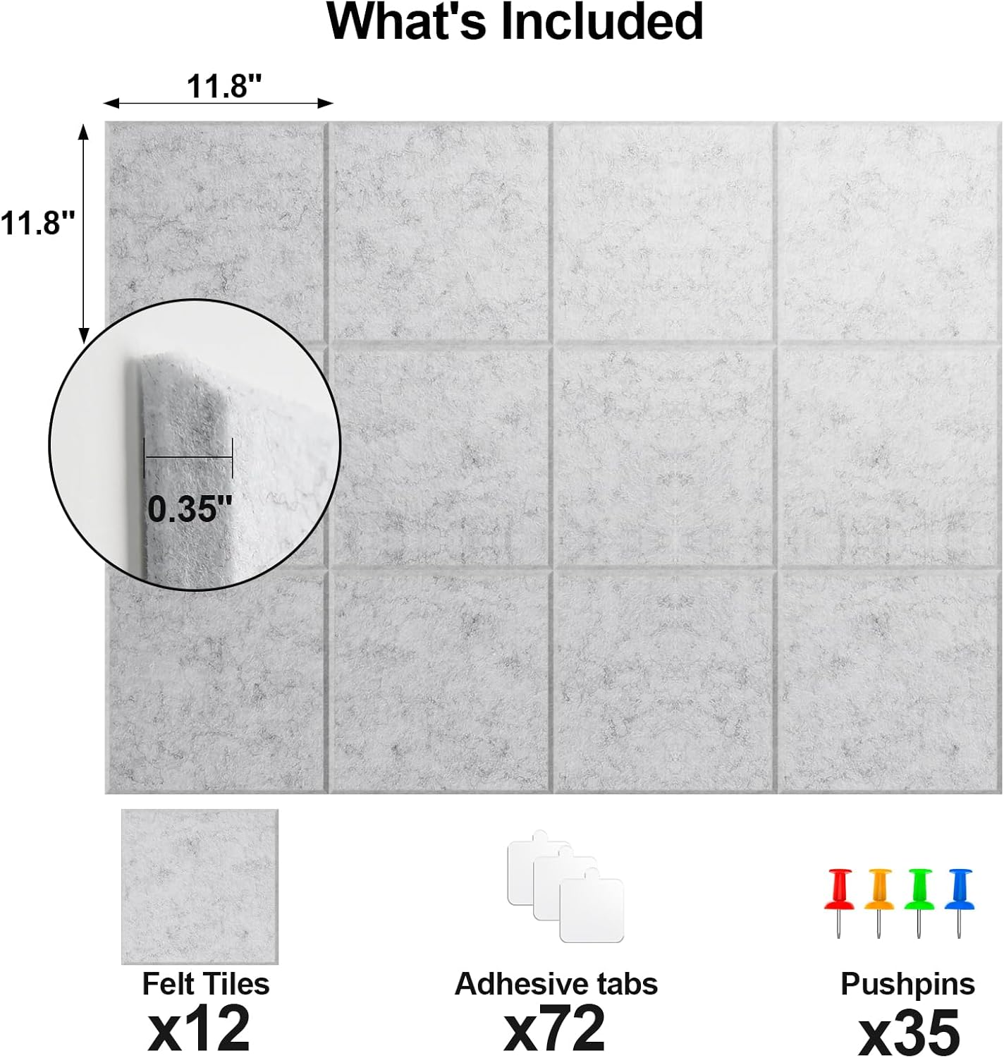 - LARGE CORK BOARD ALTERNATIVE: Each panel measures 11.8"x11.8"x 0.35", 12 felt panels, you can easily customize the size you need, with free combination splicing, and color splicing, such as 48"x36", 72"x48", 96"x48", etc.