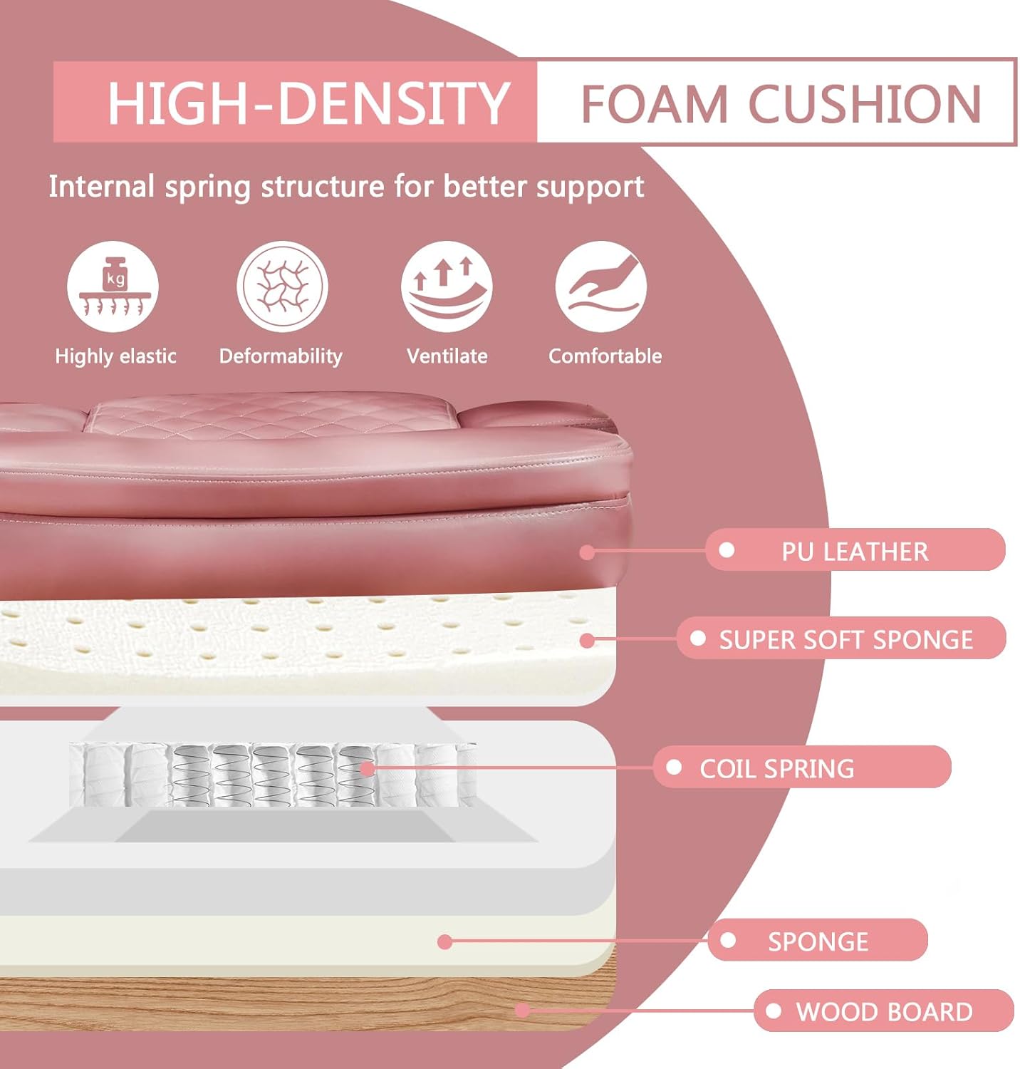 Ergonomic Office Chair with Foot Rest, Executive Chair with Footrest PU Leather Computer Chair, Big and Tall Chair Reclining Desk Chair, Thick Padded Coil Spring Seat, 400 lbs Capacity (Pink)