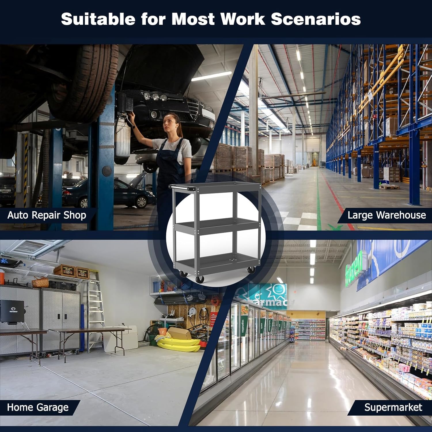 - [Versatile Use] This service cart is not only suitable for mechanical work but can also be used in garages, workshops, warehouses, supermarkets, and even as a mobile storage solution for home renovation projects, adapting to various work environments