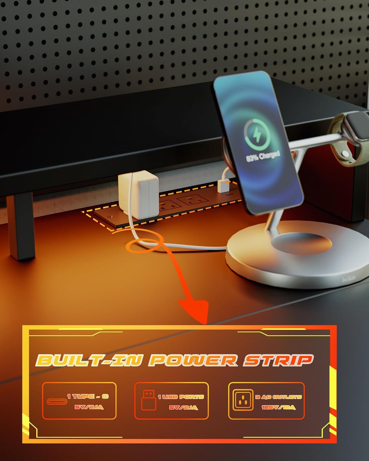 - Built-in Power Outlet and Power Strip Convenient built-in power outlet with multiple sockets for easy access to power your devices, reducing clutter and keeping your workspace organized.