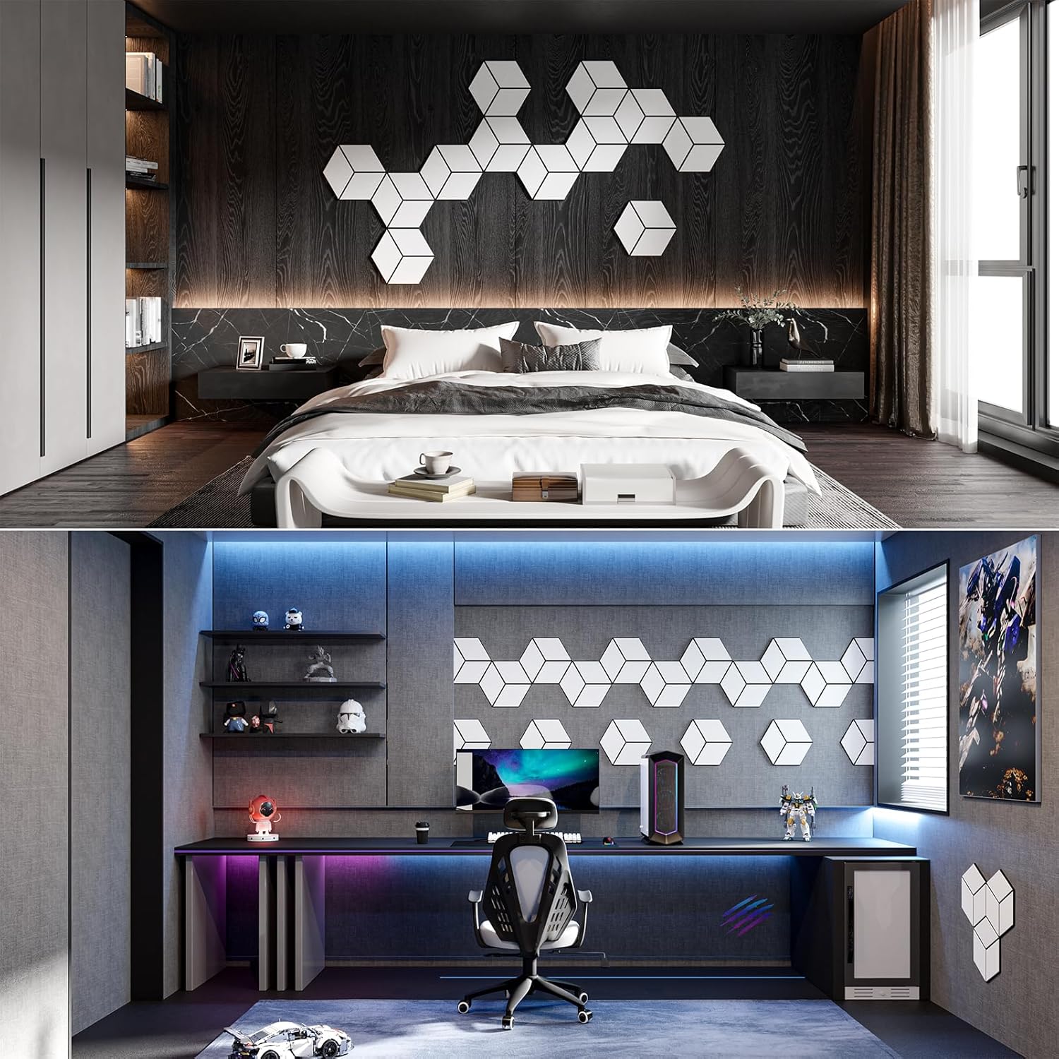 22-Pack Self-Adhesive Acoustic Panels, 12" x 10" x 0.4" – High-Density, Flame-Resistant Soundproof Foam. Absorbs Noise and Eliminates Echoes, Hexagonal 3D Design (White Face)
