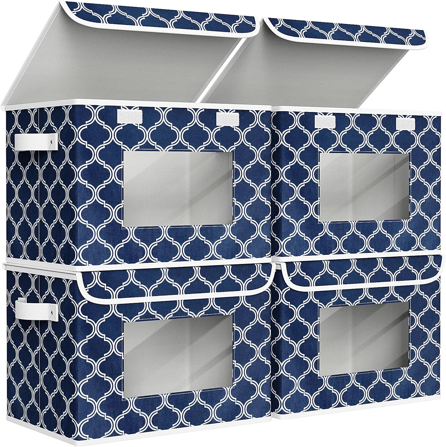 Univivi Fabric Foldable Storage Boxes [4-Pack] Large Collapsible Stackable Storage Bins with Lids, Closet Organizers and Storage Cube Basket for Home, Office, Bedroom (Blue Lantern, 17”x 12” x 12”)