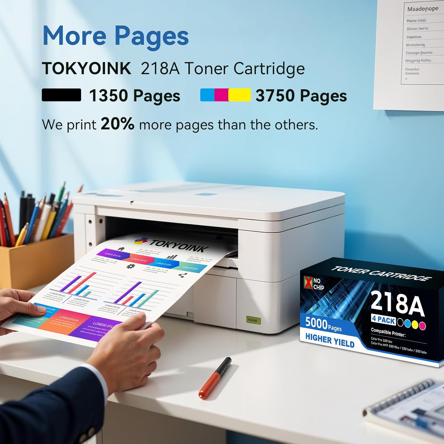 - No Chip: TOKYOINK 218A High Yield compatible toner cartridge 4 Pack do NOT come with chip, please remove the OEM 218X or 218A CHIP and install it into our new 218A High Yield toner cartridge