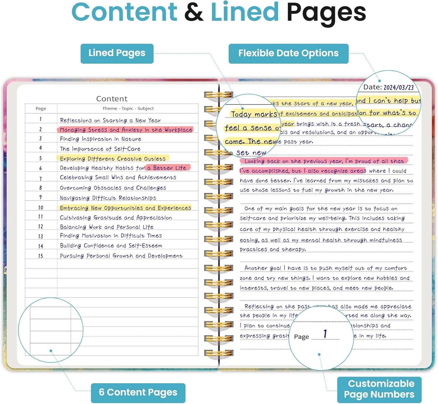 - Structured College-Ruled Pages: Featuring 7mm college-ruled lines, this journal notebook helps keep your writing organized and legible. The evenly spaced lines are perfect for structured notes, work lists, or detailed writing, making it an excellent choice for school students, professionals, and writers alike. It also includes 6 content pages, perfect for creating an index for easy reference.