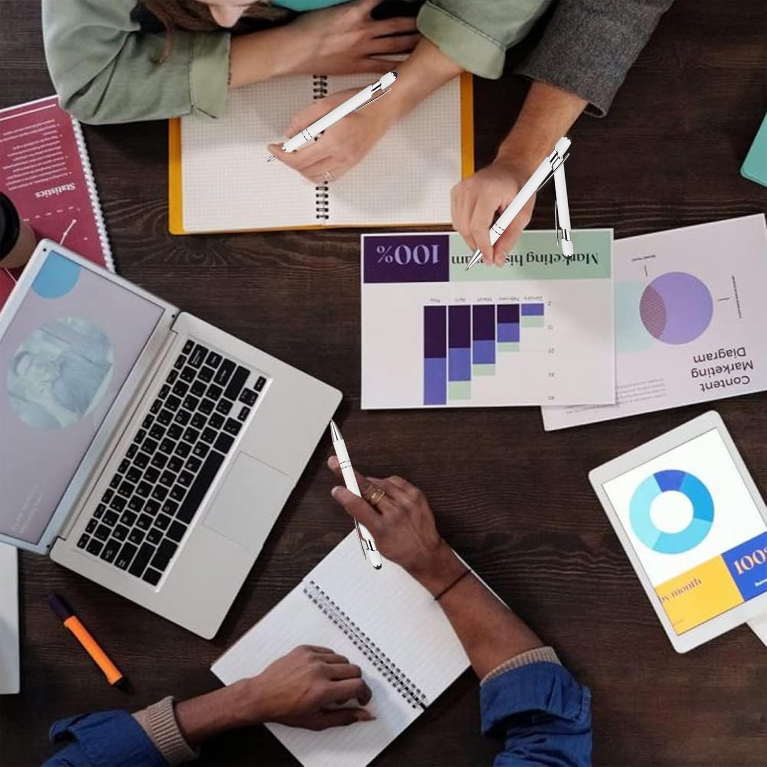 12 PCS 2 in 1 Stylus Ballpoint Pen with Stylus Tip, 1.0 mm Black Ink Metal Pen Stylus Pen for Touch Screens (Silver & White)