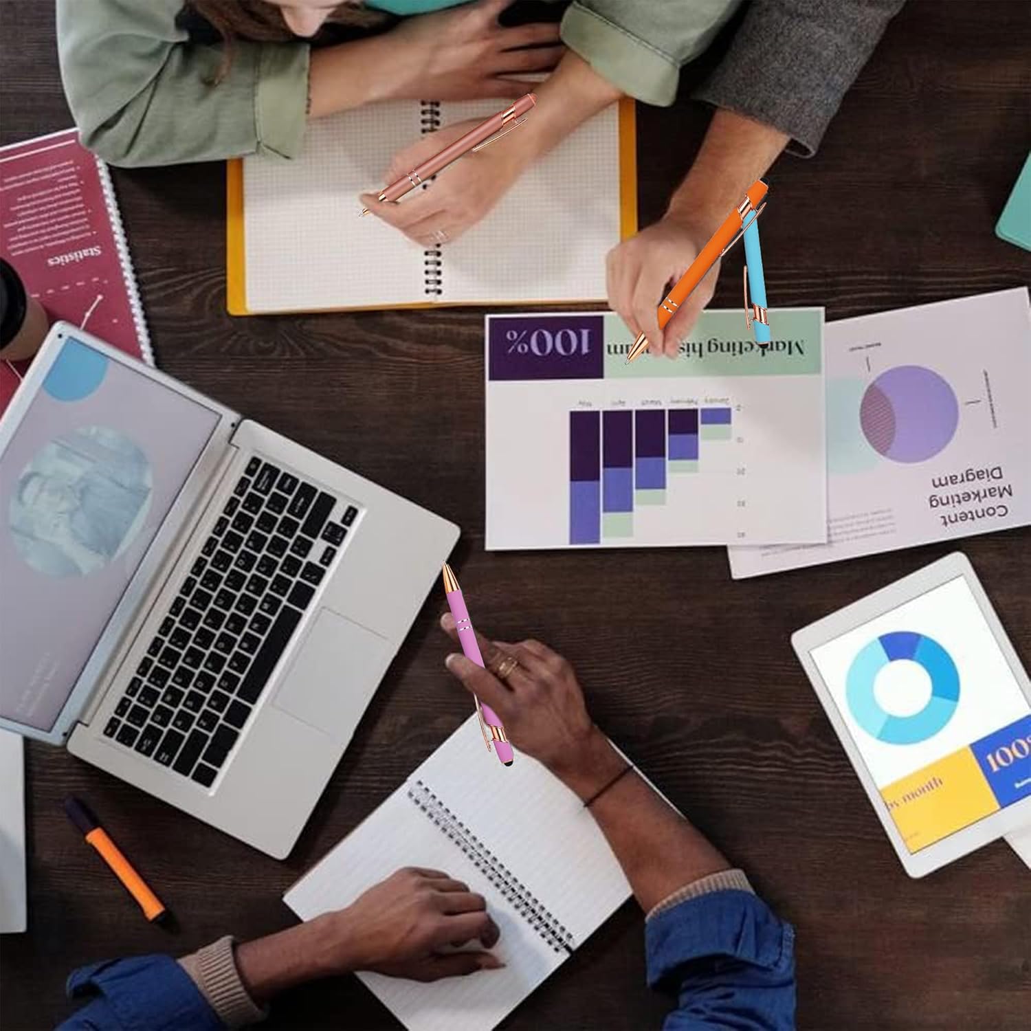 12 PCS 2 in 1 Stylus Ballpoint Pen with Stylus Tip, 1.0 mm Black Ink Metal Pen Stylus Pen for Touch Screens (Rose Gold & Mix3)