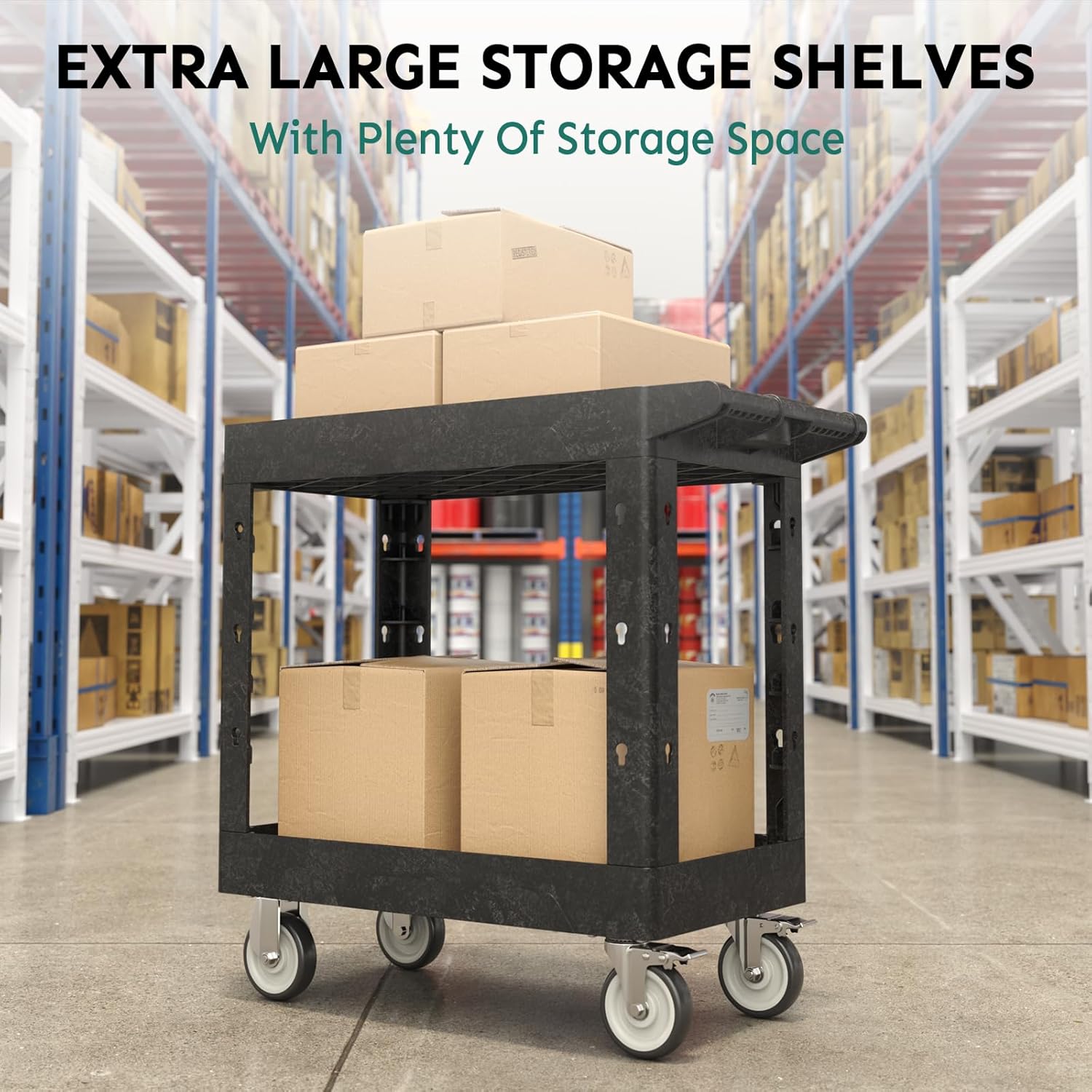 - 【Excellent Storage Capacity】Outstanding 1000 lbs load capacity, large storage space, and multiple storage configurations for more reasonable storage of items of all sizes ensure you can move more goods at once and increase work efficiency. And every cart is professionally load tested before it leaves the factory.