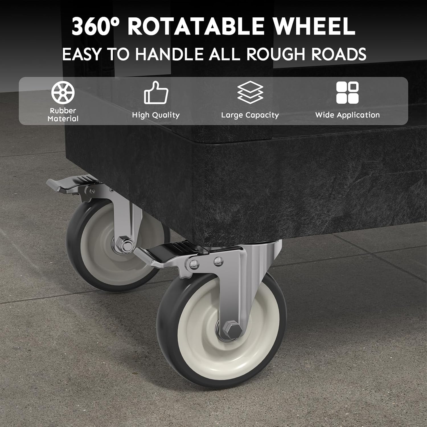 - 【Easy to Move & Stop】This versatile service cart comes with 4 wheels made of industrial-strength polypropylene for smoothness, durability, and ease of movement (2 of which are braked wheels), plus the exterior is wrapped in thermoplastic rubber that not only absorbs vibration and reduces noise, but also prevents floor scuffs and carpet snags.