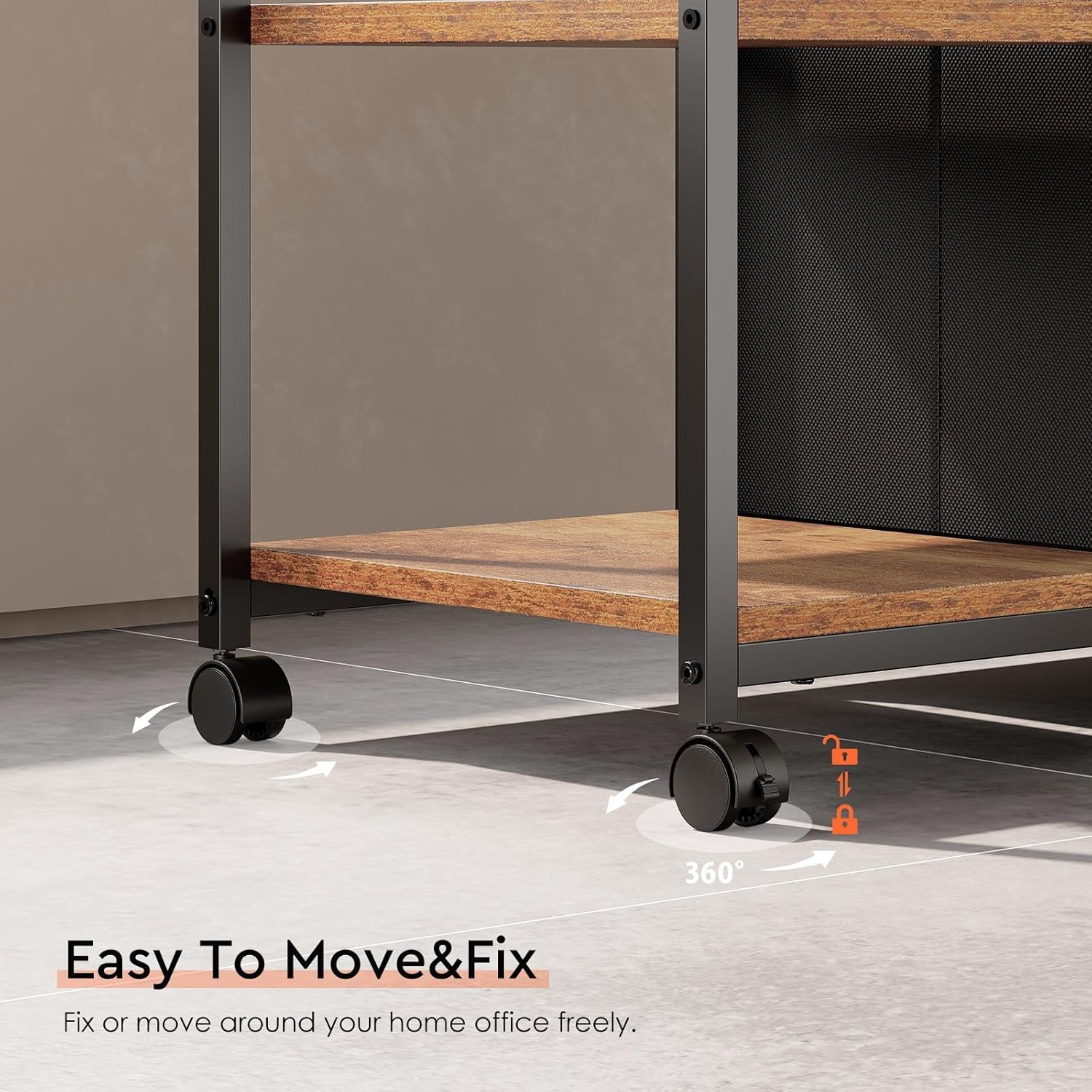 - [Easy Mobility] Mounted on four wheels, this printer stand can be moved and repositioned effortlessly. The two front casters feature built-in brakes, ensuring stability and preventing unwanted movement
