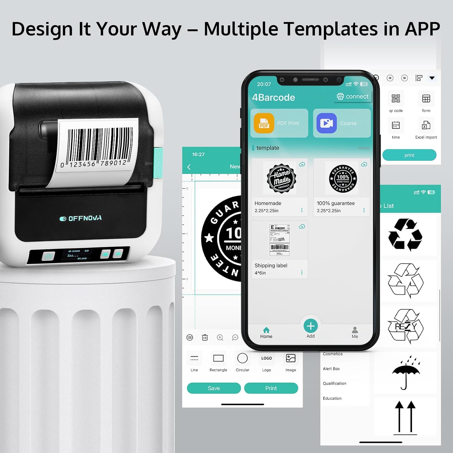 - Easy Mobile Setup– Get started in just 3 steps: ① Download the “4Barcode” app ② Turn on the printer and Bluetooth ③ Connect, customize, and print directly from your phone or tablet—designed for users of all levels.