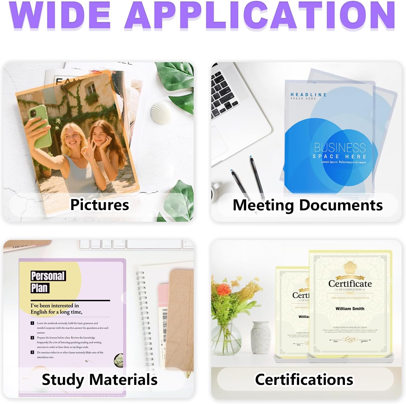 - 【L-Type Sheet Protectors】Our clear plastic folders feature a two-sided seal with top and right-side openings, allowing for easy loading from the top or side. The thumb notch design provides convenient access