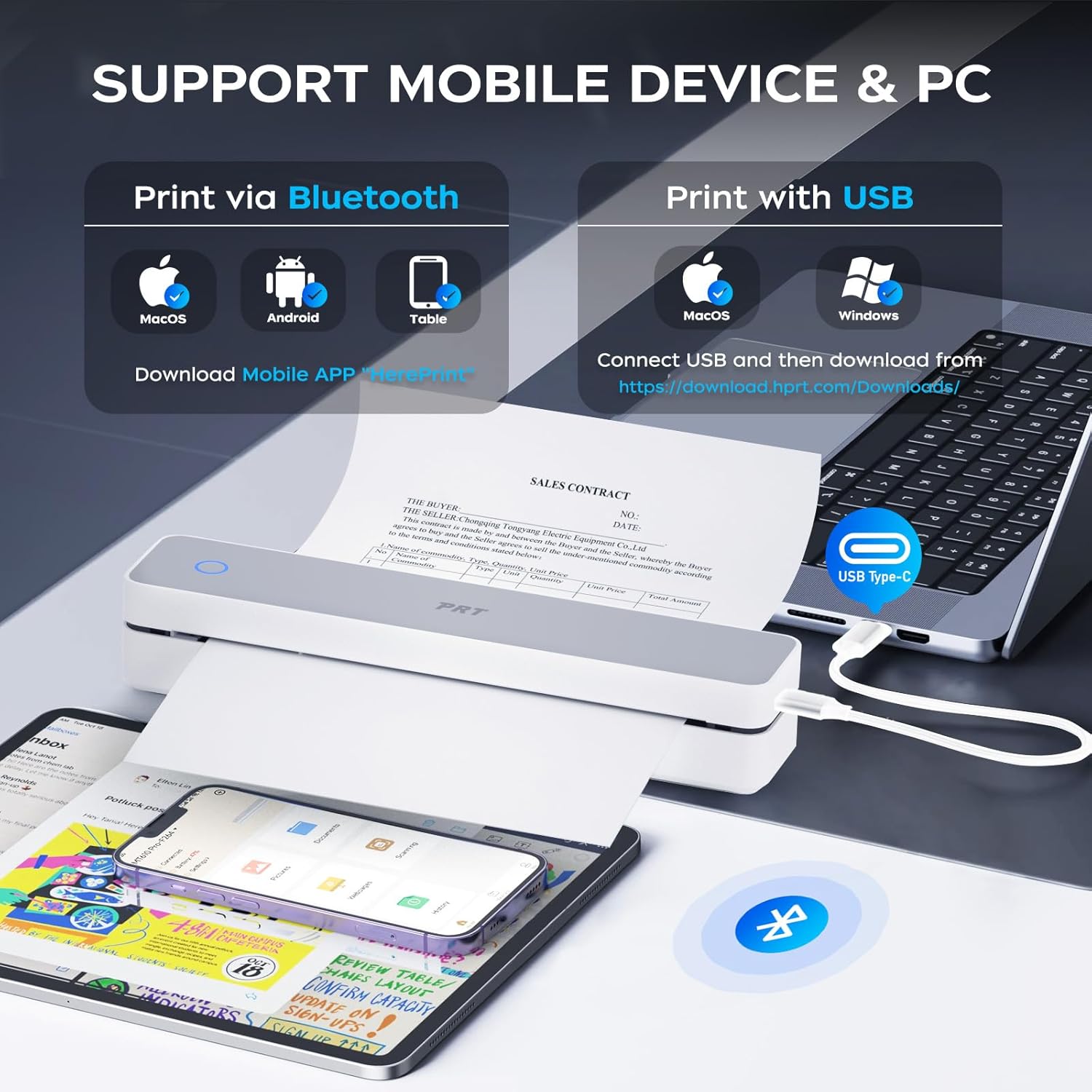 PRT Thermal Portable Printer Wireless for Travel, Inkless Bluetooth Support 8.5"x11" US Letter, A4, Compatible with iOS, Android, Laptop, Mobile Printer for Office, Vehicle, Home Use