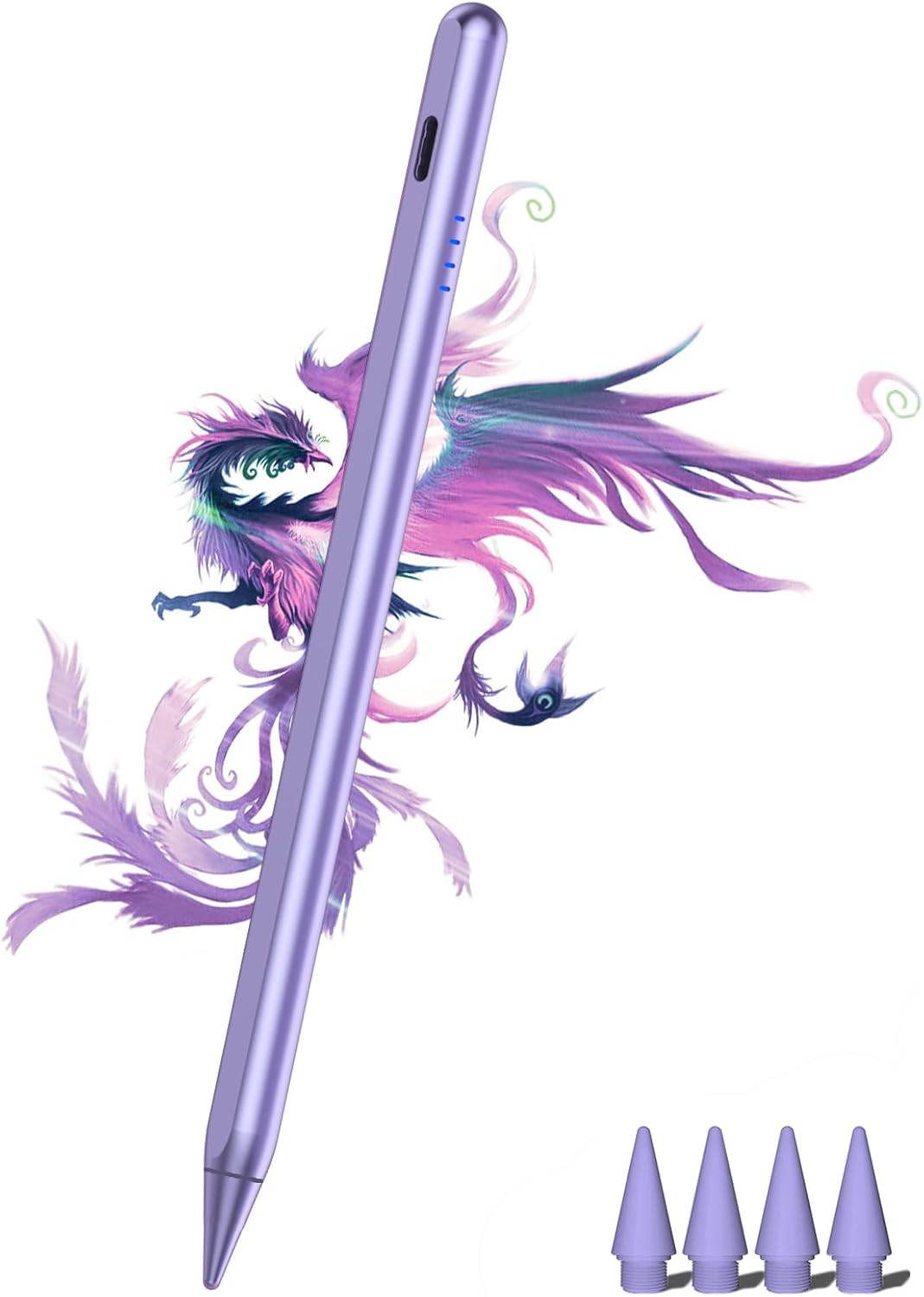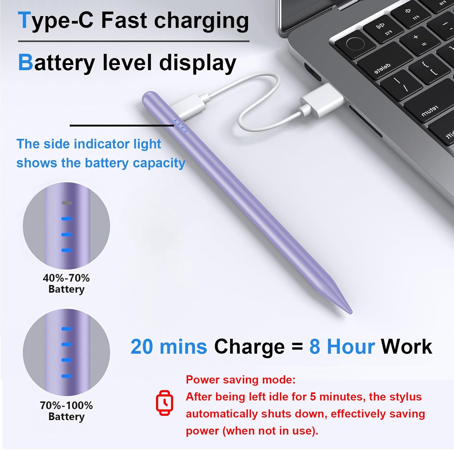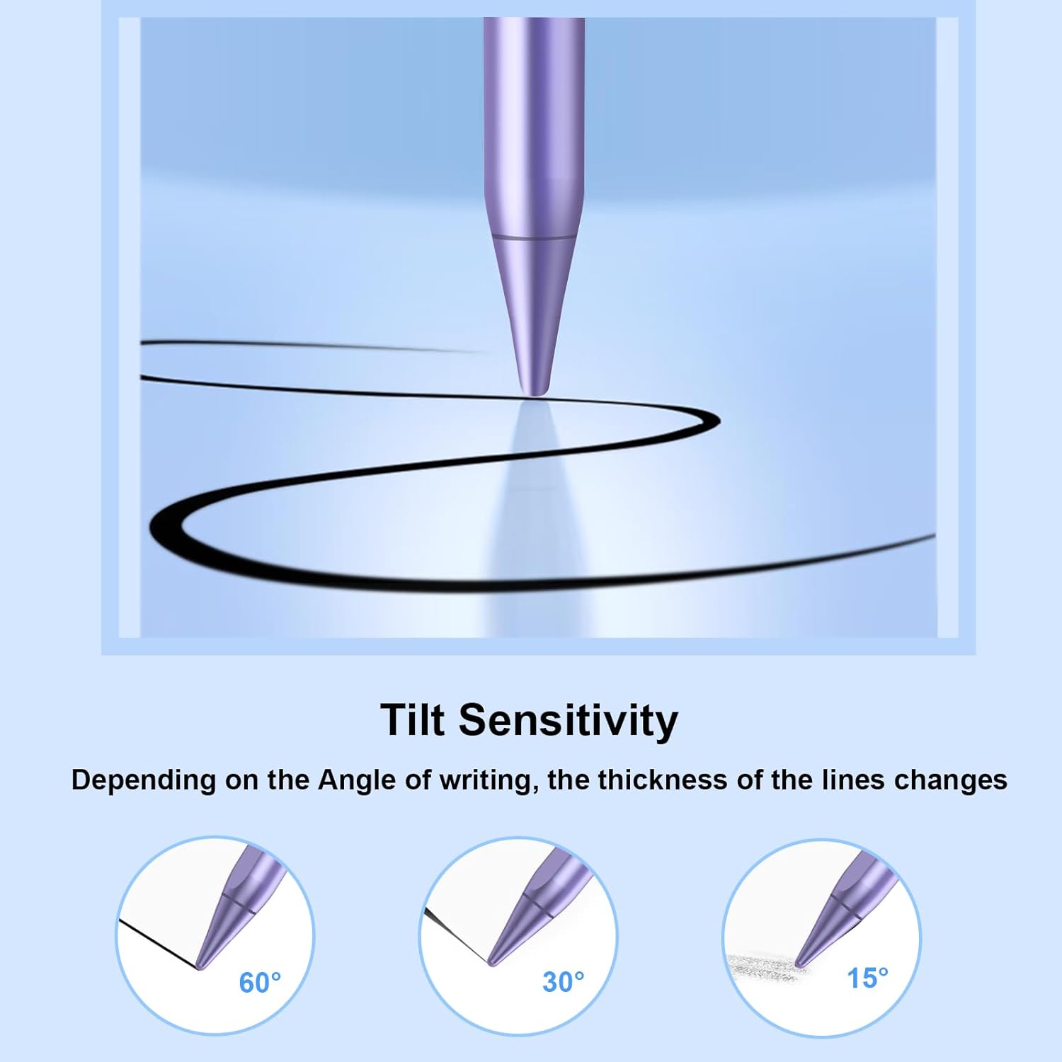 Stylus Pen for iPad 9th&10th - Fast Charge for iPad Pencil Palm Rejection Active Pen Compatible with (2018-2025) Apple iPad 6/7/8/9/10/11(A16), Pro 11"/12.9"/M4, Mini 5/6, Air 3/4/5/M2/M3 (Purple)