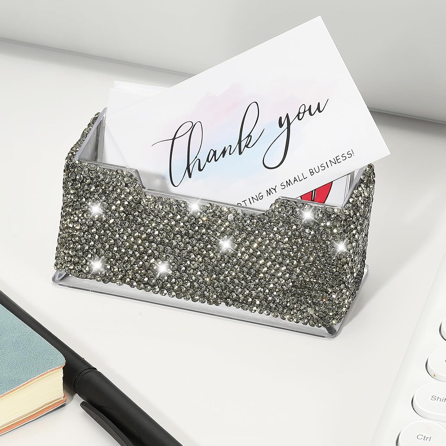 PATIKIL Rhinestone Business Card Holder, Crystal Business Card Holders Bling Business Card Organizer Display Stand for Desktop Desk Office Exhibition, Grey