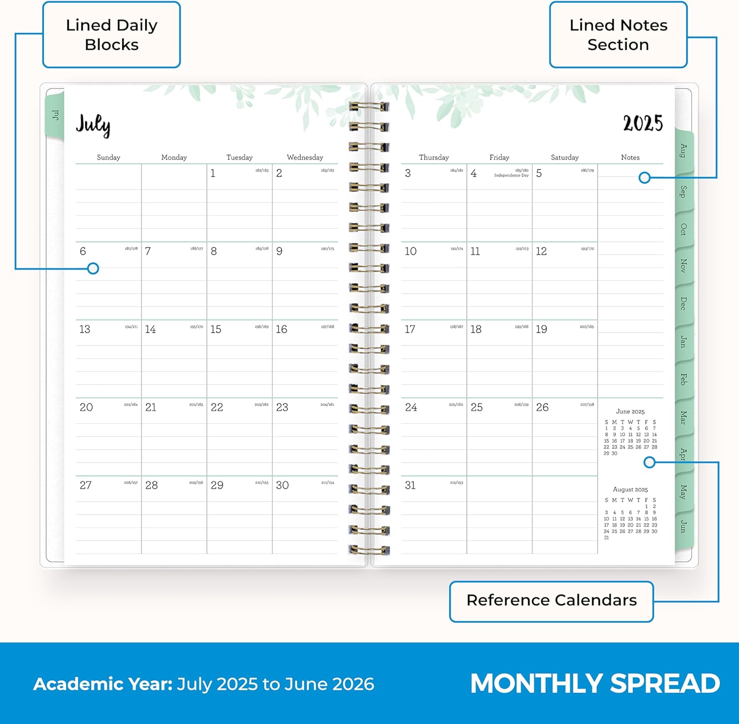 Blue Sky 2025-2026 Weekly and Monthly Academic Year Planner Calendar, July 2025 - June 2026, 5" x 8", Flexible Cover, Wirebound, Laminated Tabs, Laurel