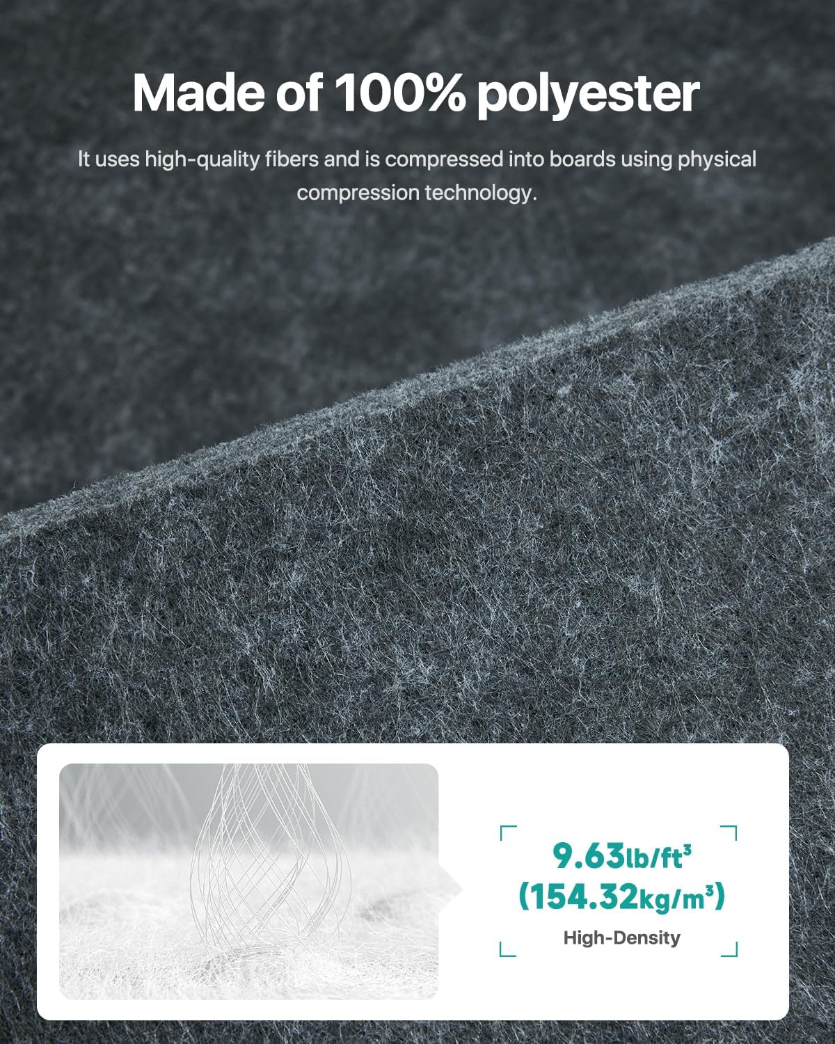 • High-Quality Material: Sound proof panels for walls made of 100% high-quality polyester fiber;soundproof foam panels are durable and wear-resistant