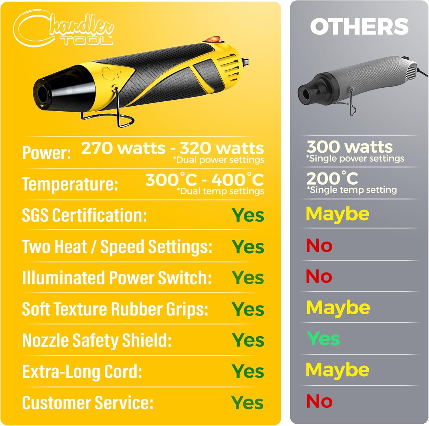 - ▶ Variable Speed & Heat: Our heat gun for crafts has dual temperature and speed settings - low speed & heat for delicate or detail work and high speed & heat for heavy duty or high volume work. It’s like having a mini heat gun and a full size heat gun in one!
