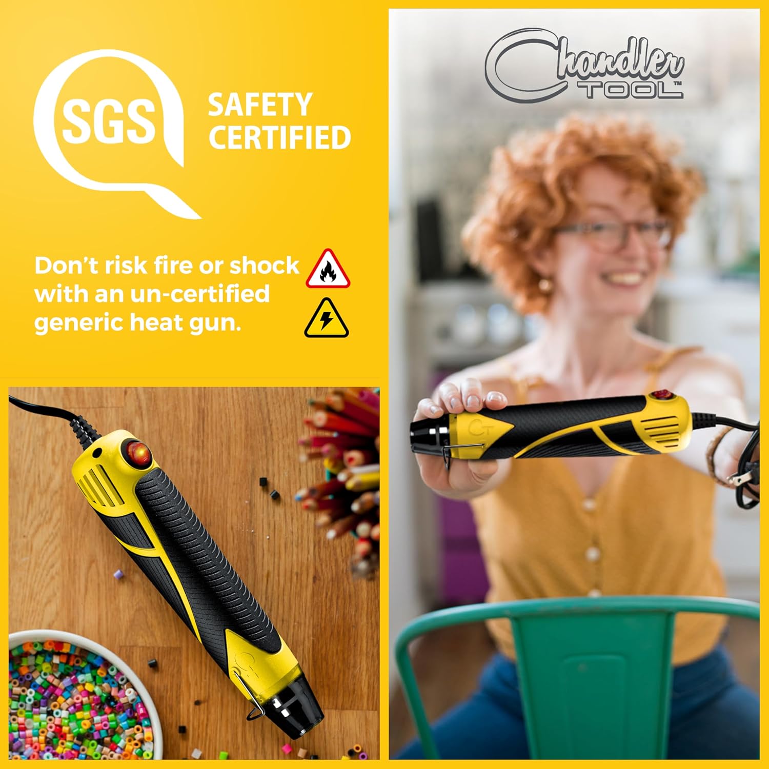 Heat Gun for Crafting, Mini Dual Temp Hot Air Gun Tool for Epoxy Resin, Shrink Wrapping, Vinyl Wrap, Embossing, Electronics, Candle Making, Sublimation, Phone Repair & DIY (Yellow/Black)