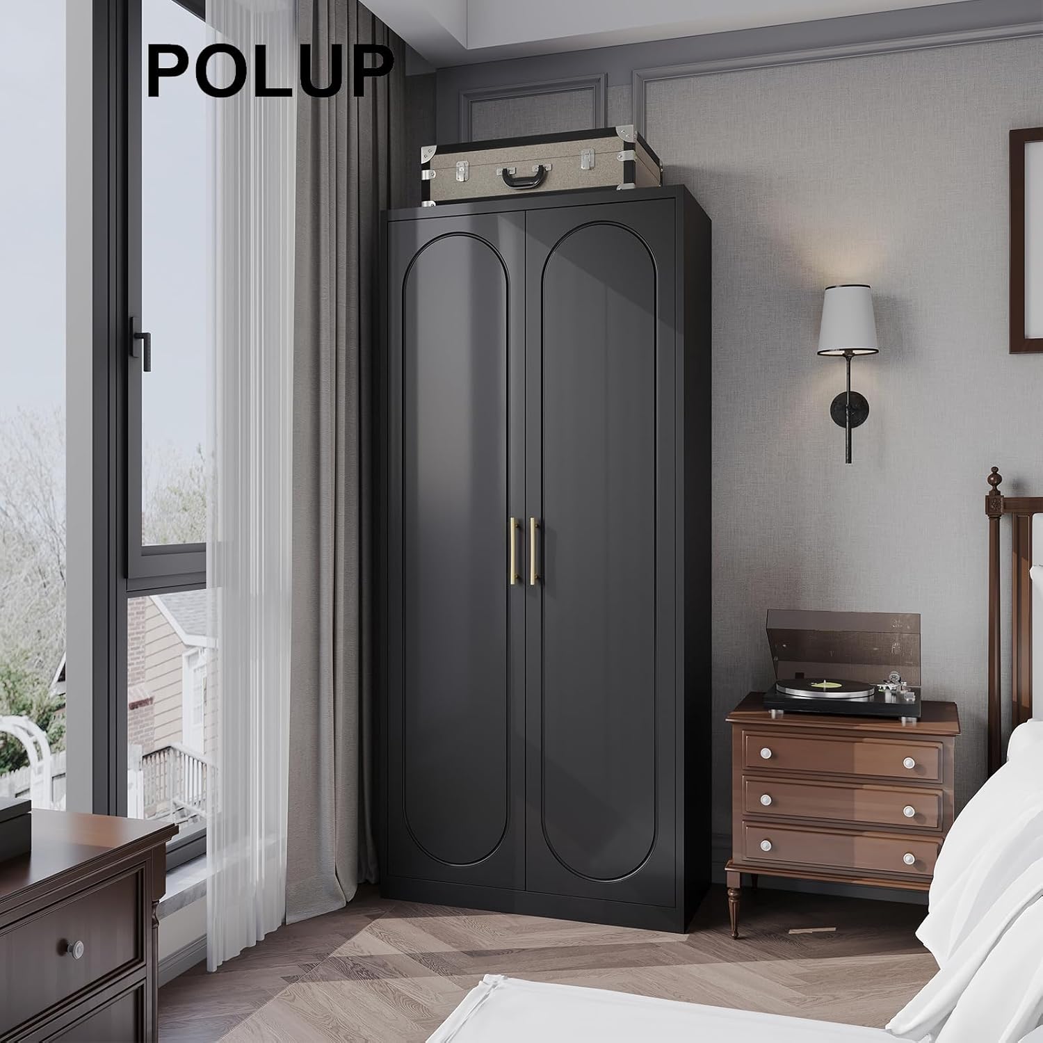 - [STURDY AND RELIABLE] Crafted from thickened steel panel, this black wardrobe stands firm and stable. Its robust clothing hanging pole can withstand up to 66LBS loding-bearing, ensuring years of reliable use. Reinforced joints and thick metal panels guarantee no wobbling or collapsing, even when fully loaded with your extensive clothing collection