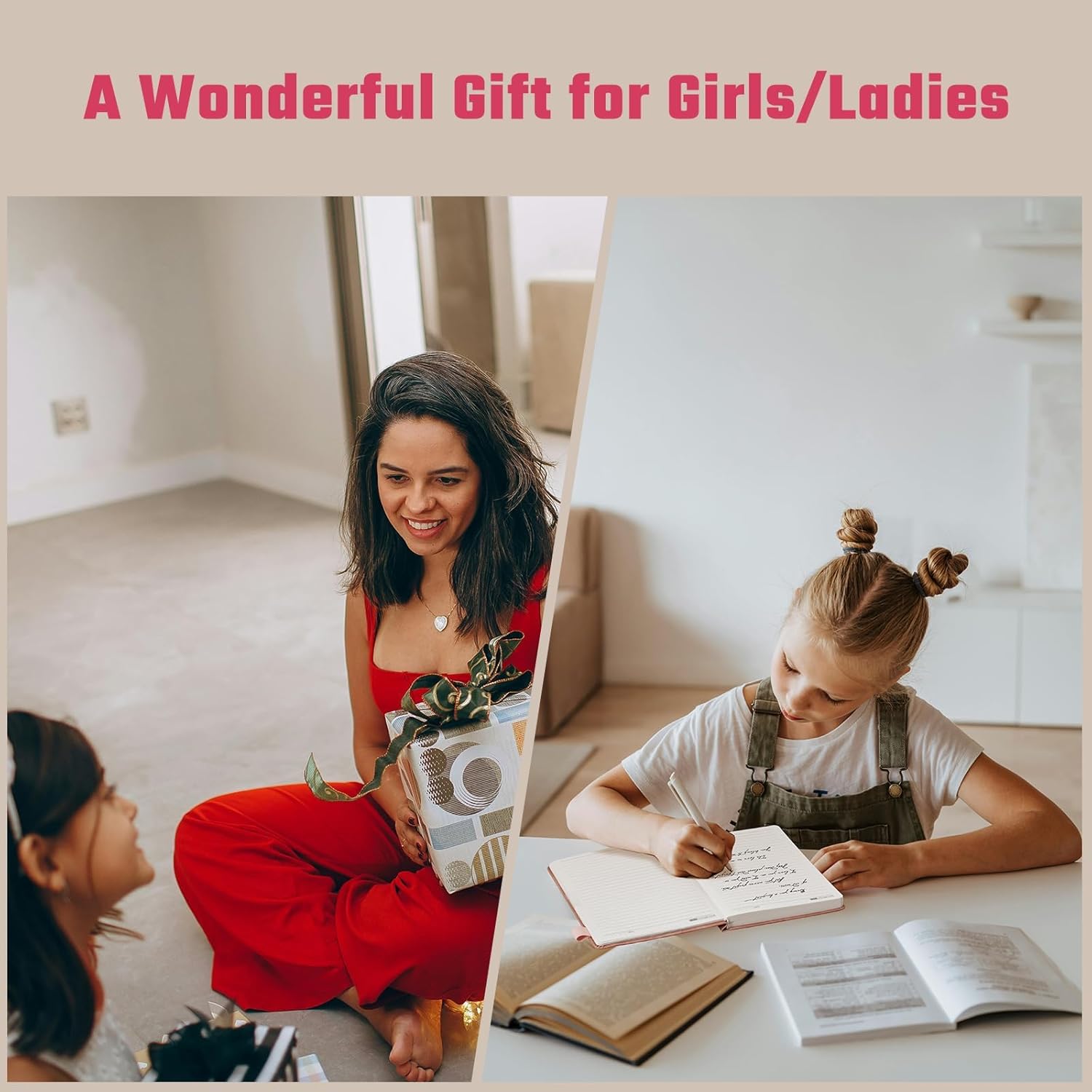 - Smooth Writing Experience: A5 size lined notebook, 7.1 mm college ruled journal for writing is made of 100 GSM high quality paper, no ink bleed when writing, can be 180 ° flat, give each girl a comfortable writing experience.