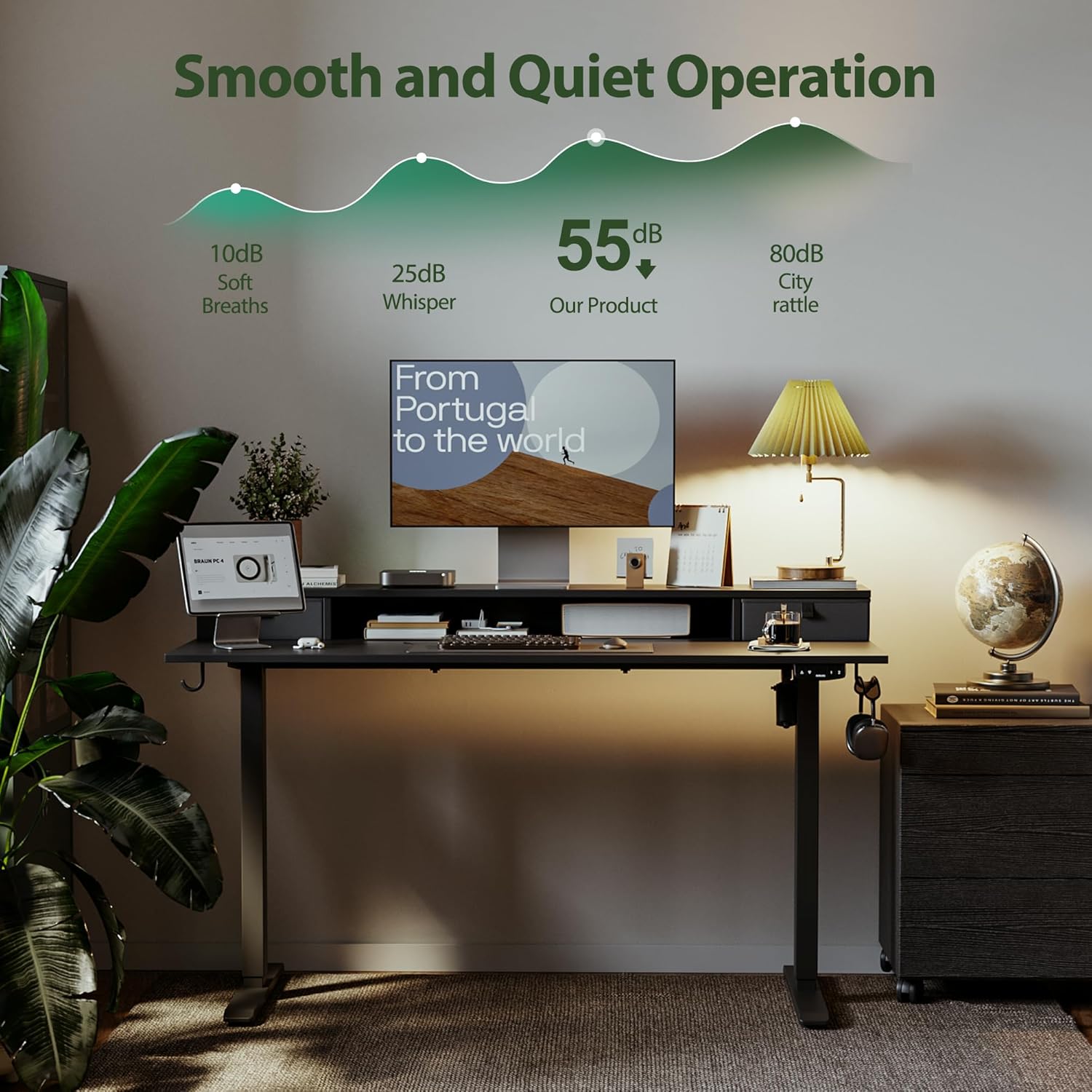 - 【Adjustable Height for Sit and Stand Flexibility】 Effortlessly switch between sitting and standing with the electric height adjustment feature. The desk height can be adjusted from 27'' to 45'', allowing you to find the perfect position for your work and health needs. The quiet motor operates below 55 dB, ensuring a peaceful work environment.